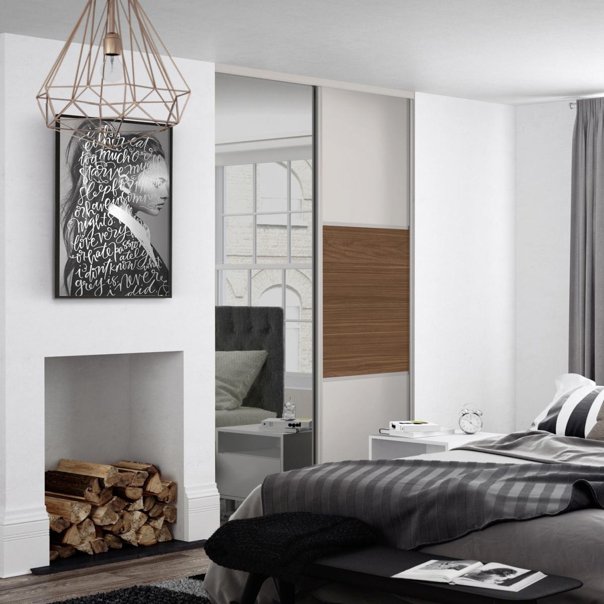 This wardrobe door kit is a clever mix of modern practicality and aesthetic appeal, making it a versatile addition to both contemporary and transitional interiors. I love how the dove grey frame adds a soft, neutral tone that pairs well with monochrome, scandi, or even warm wood schemes, while the walnut split panel introduces a touch of natural warmth and texture. The mirrored panel not only enhances the sense of space and light, but also offers functional convenience in bedrooms or dressing rooms. For styling tips, consider pairing it with minimalist furniture for a sleek look, or add metallic or textured accessories to elevate the overall aesthetic. It's particularly effective in spaces where storage needs to be stylish yet unobtrusive, helping to create a clean, spacious feel.
