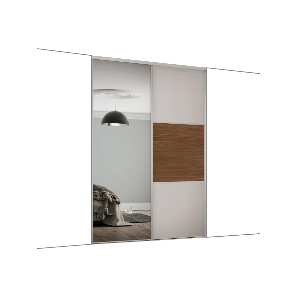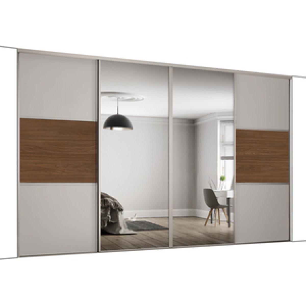 Spacepro Dove Grey Frame & Split Panel With Mirrored Classic Sliding Door Kit - Dove Grey/Walnut / 1489mm / 2