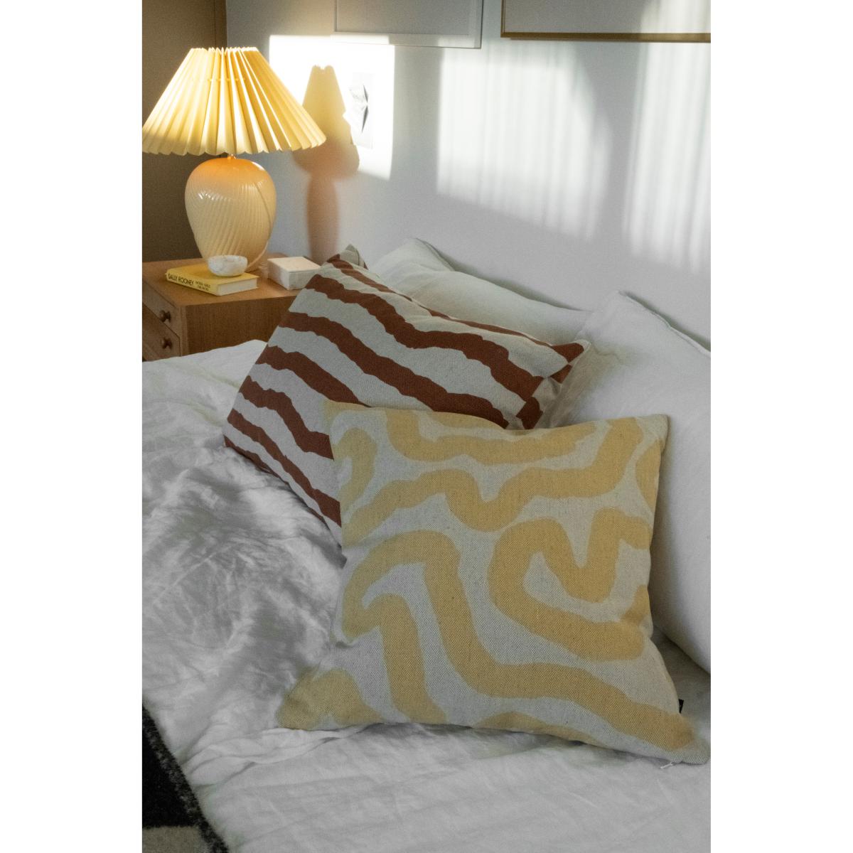 I really like this yellow pillow-it's a versatile piece that can bring warmth and brightness to a range of interiors. Its cheerful hue works wonderfully in neutral-toned living rooms or bedrooms, adding a pop of colour without overwhelming the space. The pattern lends itself well to both modern and eclectic styles, and it pairs nicely with natural textures like wood or linen. For styling tips, try layering it with other cushions in complementary shades or textures, and consider placing it on a sofa or armchair to create an inviting, cosy corner. Given its size, it's perfect for adding a touch of colour while remaining easy to reposition as needed.