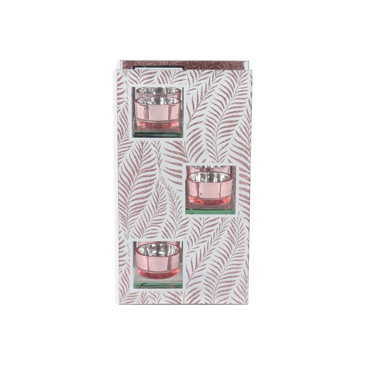 Bold and beautiful, making the perfect ornament for your home, this Sparkle Leaf Mirrored Tealight Holder is a stunning way to get your space feeling cosy. Crafted with a mirrored base and decorated with pink glitter leaves for a modern touch, this tealight holder fits 3 tealights. As the flame flickers, the mirrored frame and glittered elements create a mystical effect that will make your living room or bedroom feel like a glittering paradise.