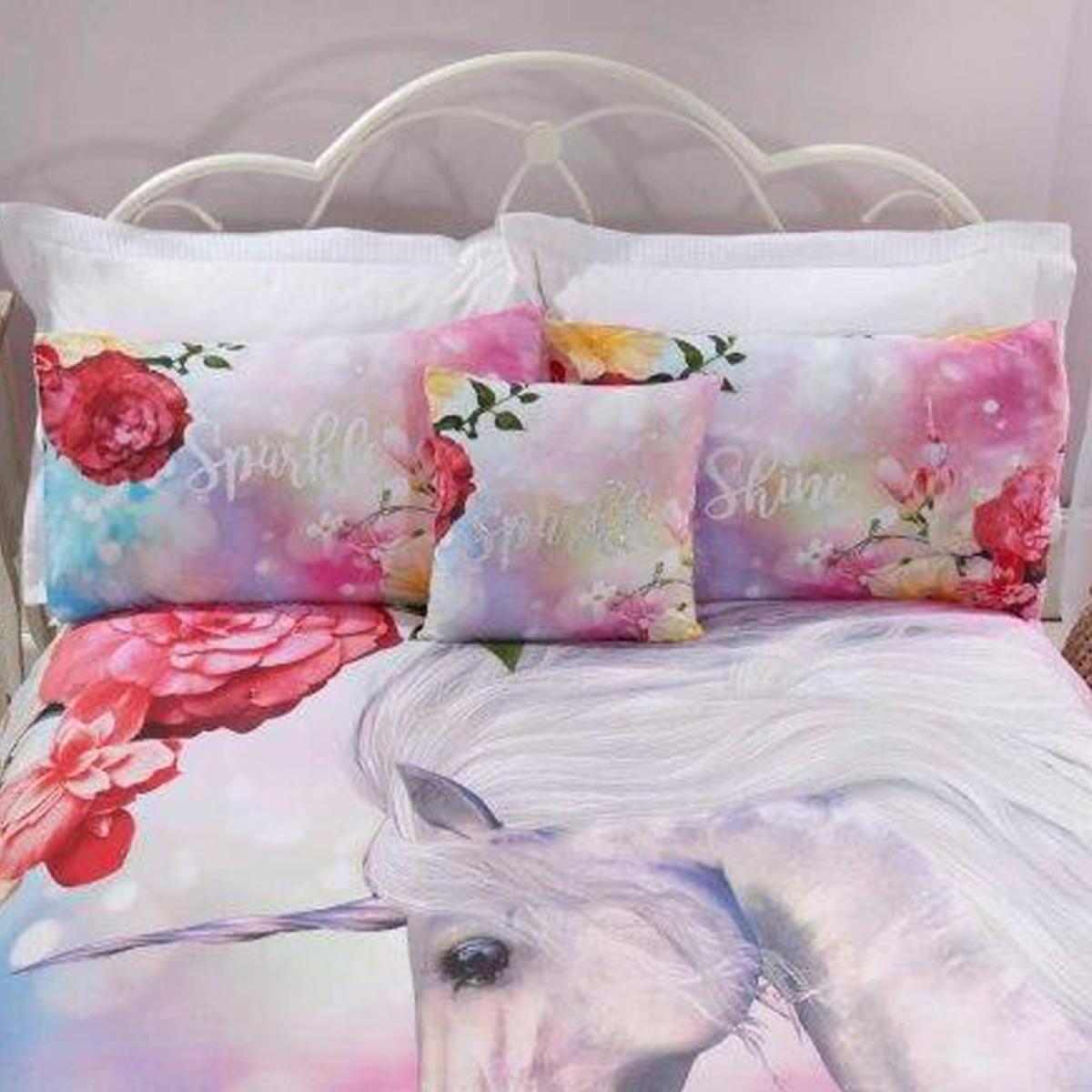 A magical reversible cushion cover. Featuring pretty photographic flowers and glitter printed text.