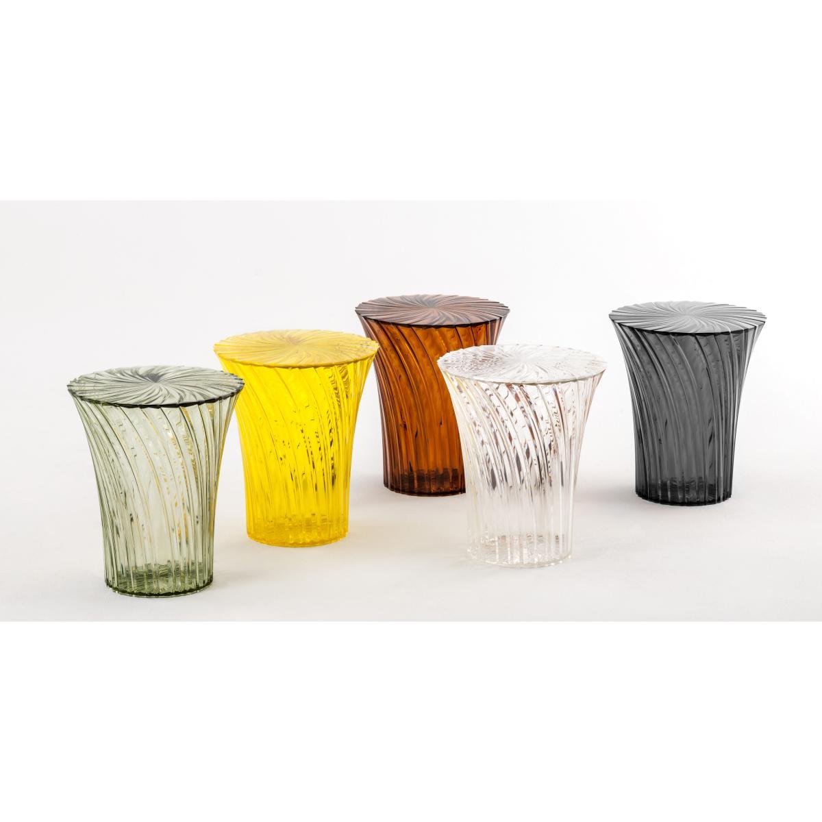 Glittering like a gem, here comes Sparkle, the new creation of Tokujin Yoshioka for Kartell! A low stool made from a single mold sculptural forms reminiscent of a loner. The model surface is truly extraordinary: irregular, punctuated by many streaks that refract light dramatically, and give Sparkle the appearance of a diamond. Stool around a table, seat saves space on the balcony or nightstand in the bedroom, Sparkle brings a touch of chic everywhere in the house.