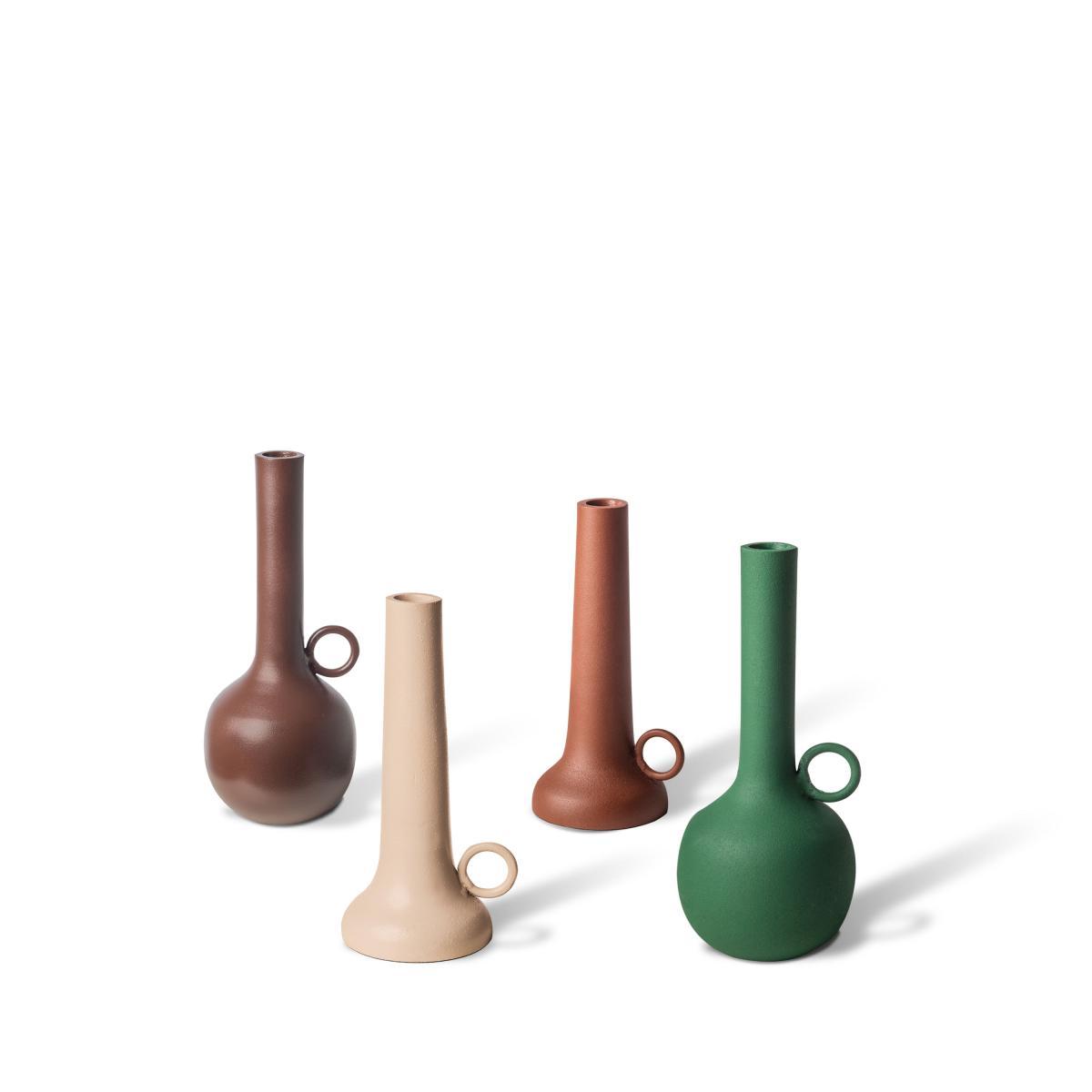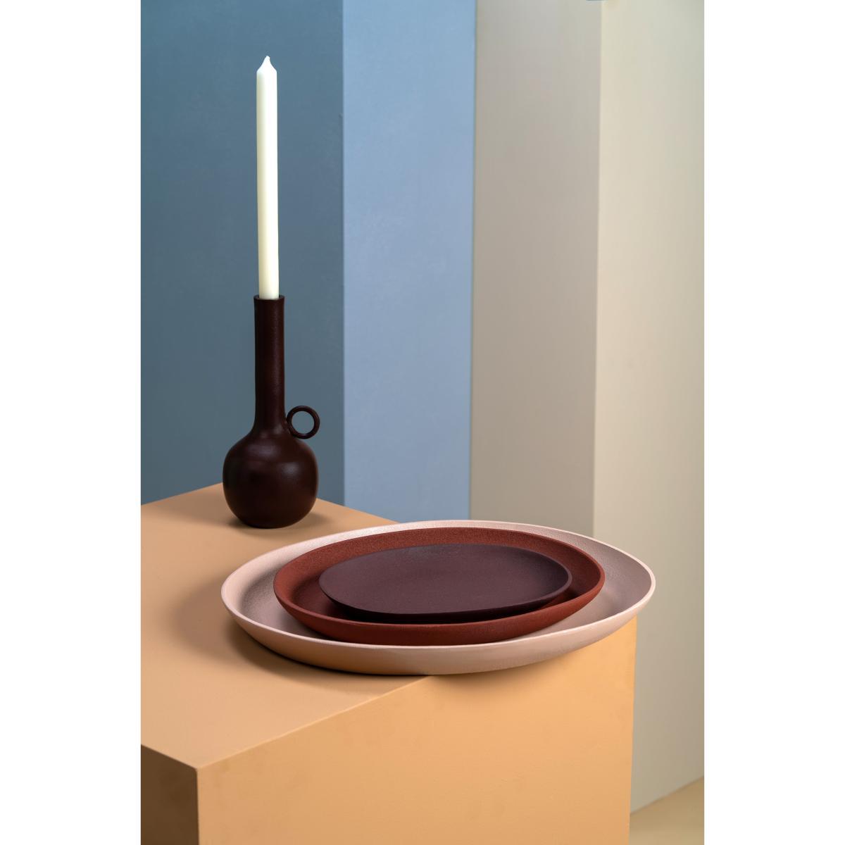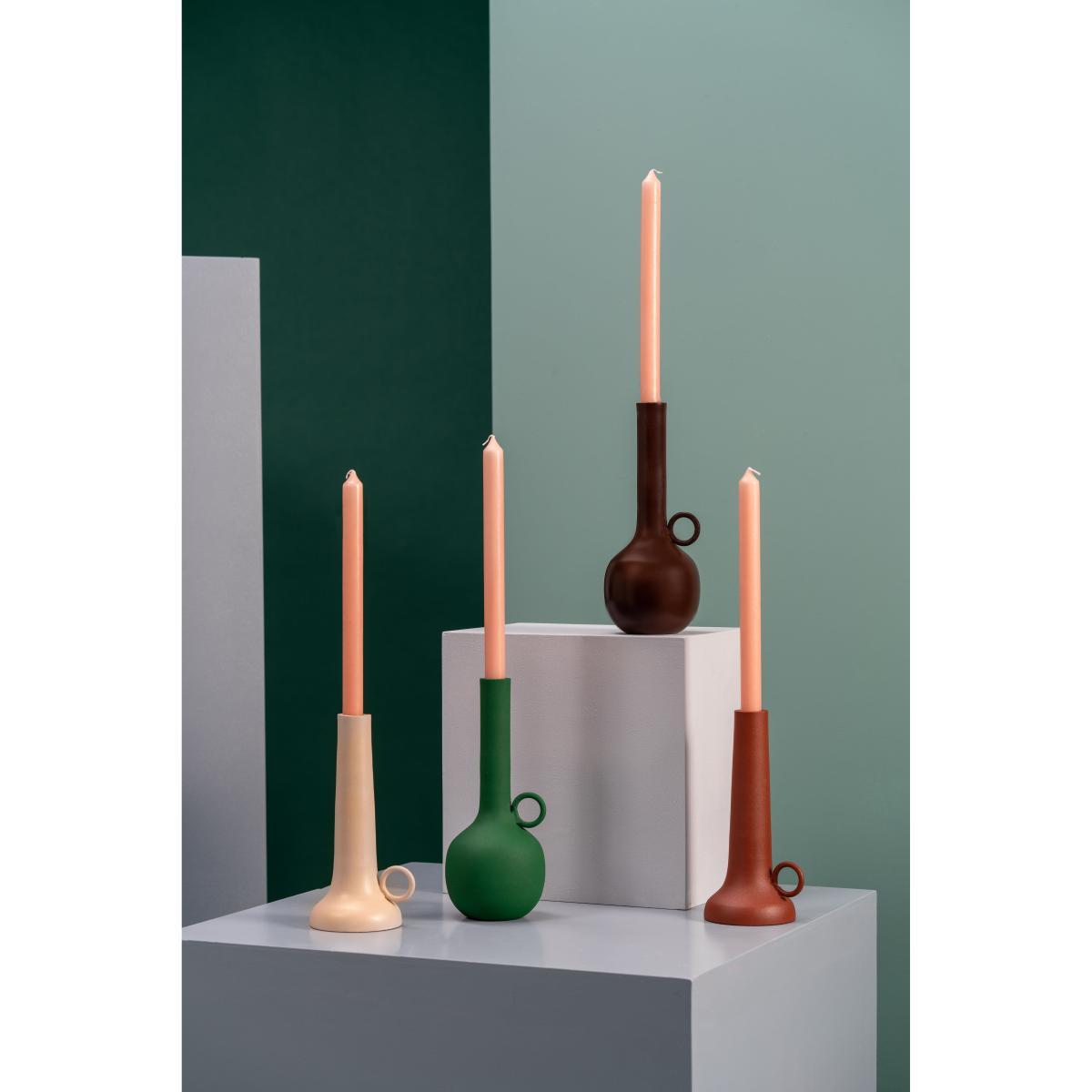 These metal candle holders showcase a pretty harmony in their forms and colours. A bridge between past and present, these candle holders decorated with small round handles offer a contemporary reinterpretation of ancient amphorae. The archetypal form has been refined : the design is very graphic, the silhouette and volume perfectly balanced. The essential lines highlight the matt, velvety, soft and tactile finish. The modern colours contrast in a surprising way with these archetypal silhouettes plucked from the past. You’ll love the hybrid style of these candle holders, both elegant and subtly eccentric. The Spartan candle holders display a neo-rustic style that perfectly meets our needs for authenticity and going back to basics. These candle holders can be used on their own or combined to create a pretty and colourful collection which blends styles and periods.