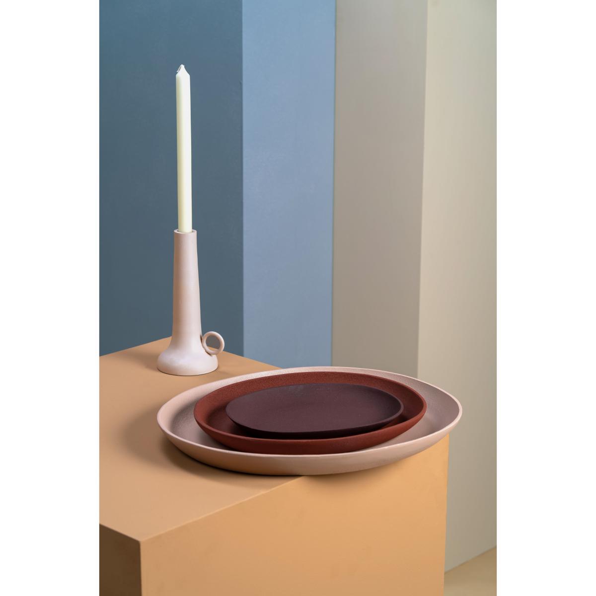 These metal candle holders showcase a pretty harmony in their forms and colours. A bridge between past and present, these candle holders decorated with small round handles offer a contemporary reinterpretation of ancient amphorae. The archetypal form has been refined : the design is very graphic, the silhouette and volume perfectly balanced. The essential lines highlight the matt, velvety, soft and tactile finish. The modern colours contrast in a surprising way with these archetypal silhouettes plucked from the past. You’ll love the hybrid style of these candle holders, both elegant and subtly eccentric. The Spartan candle holders display a neo-rustic style that perfectly meets our needs for authenticity and going back to basics. These candle holders can be used on their own or combined to create a pretty and colourful collection which blends styles and periods.