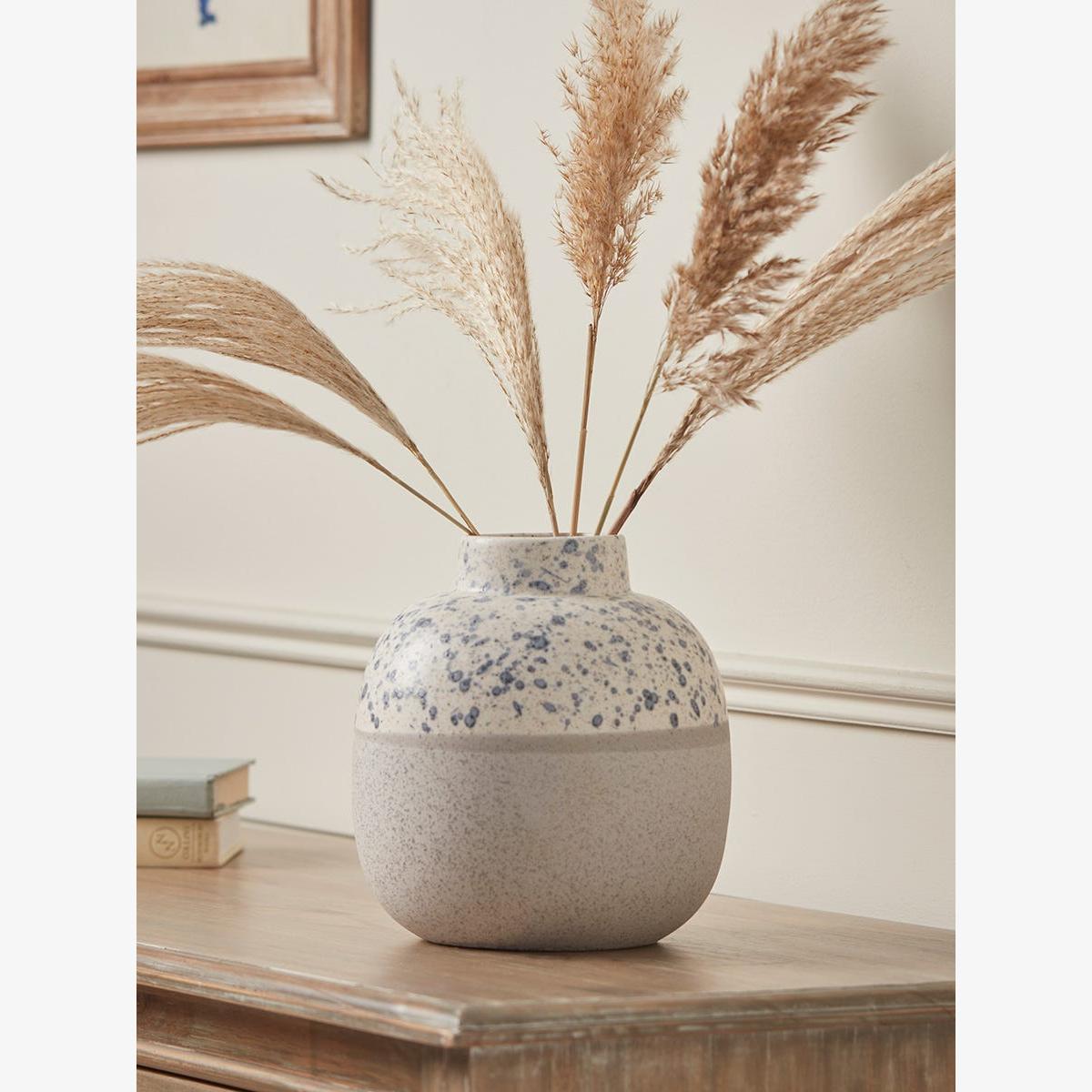 I love the speckled blue vase for its subtle yet striking design, which makes it a versatile piece for a variety of interiors. Its neutral tones and textured finish work particularly well in natural or minimalist schemes, adding a soft touch of colour without overpowering the space. To styling it effectively, consider pairing it with dried grasses or pampas for a relaxed, contemporary look; it also works beautifully as a standalone statement on a sideboard or coffee table. Practical tip - keep the height and volume of your floral arrangements balanced with the vase’s shape, ensuring it remains a refined and eye-catching accent rather than an overwhelming feature.