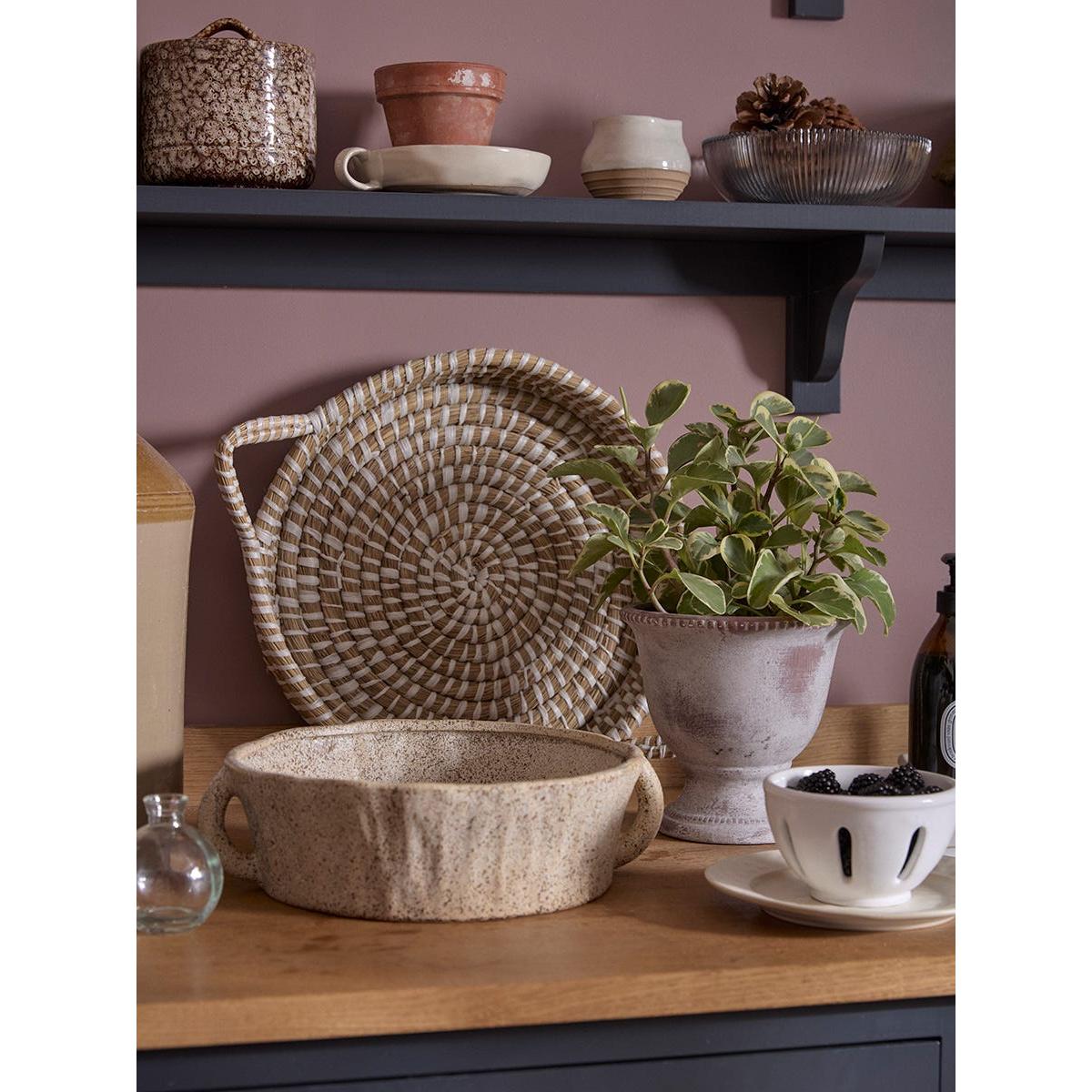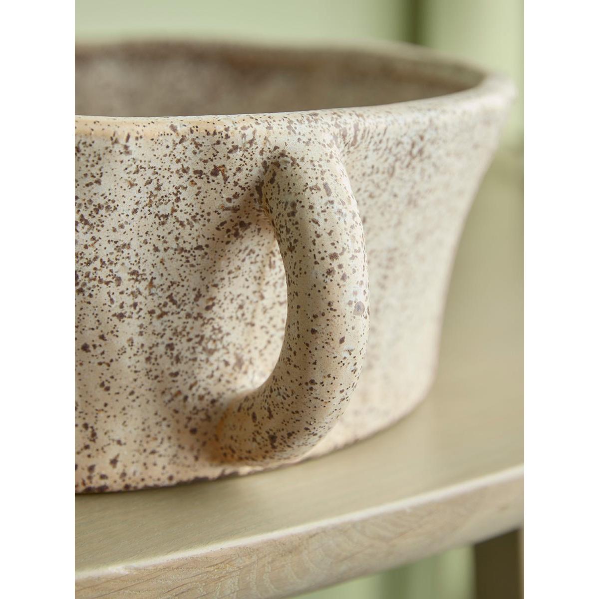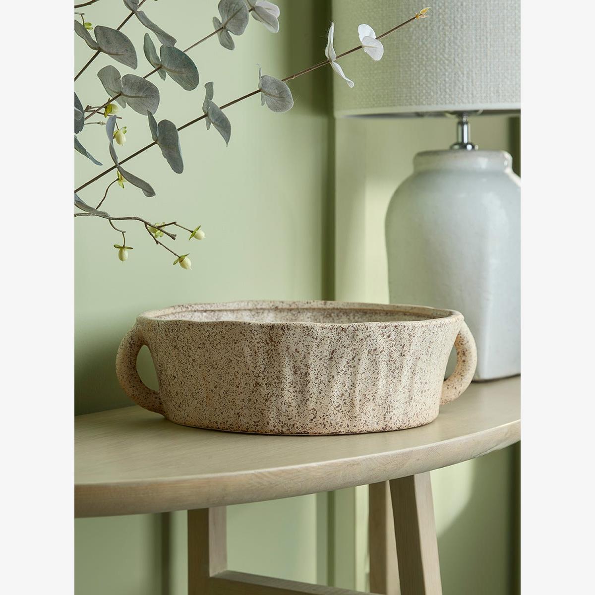 With organic lines and a sculptural edge, this handled ceramic bowl sits beautifully as a decorative feature on a sideboard or console table. With a speckled finish, the neutral tones allow this bowl to fit wonderfully in our Scandi trend.