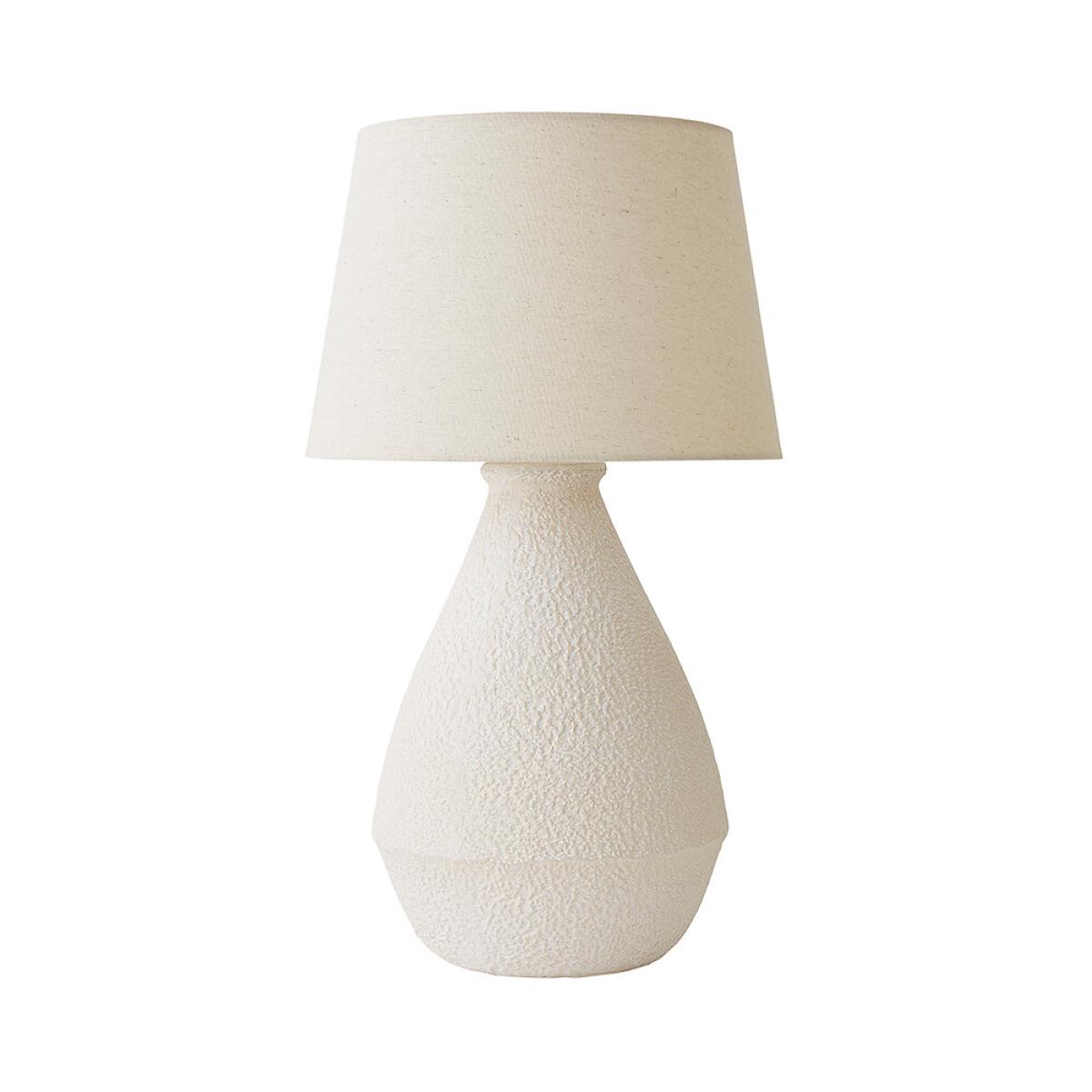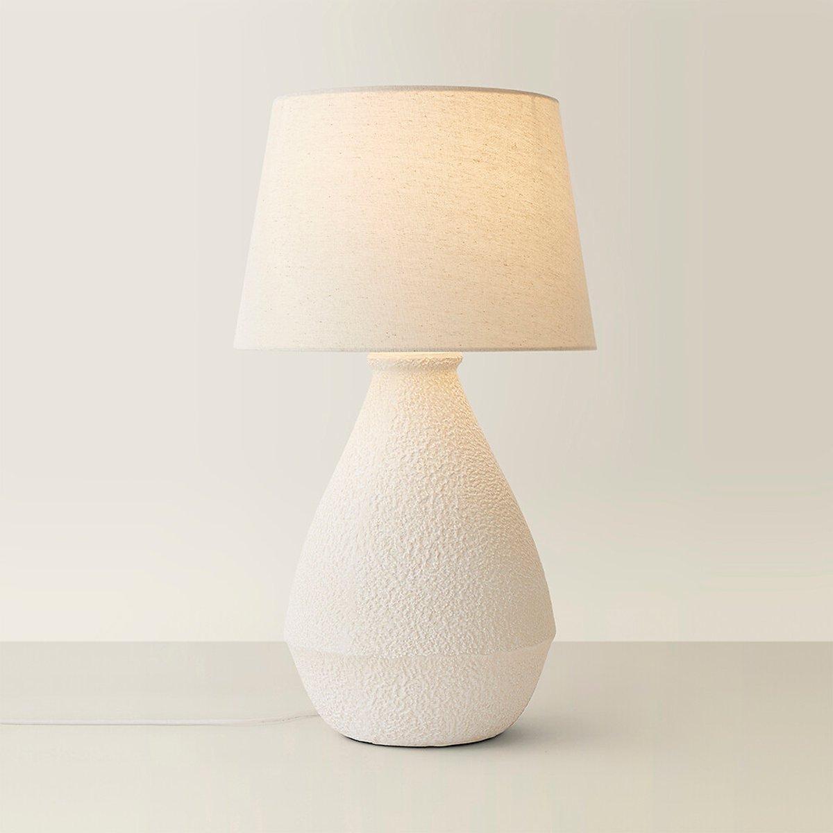 Here to add a touch of luxury and a whole lot of charm! With its hand-finished cream ceramic base and unique speckled design, it's the lamp that gets people talking. The fabric cable adds a sophisticated touch, while the natural colour linen shade creates a soft, warm glow that makes any room feel inviting. Whether you're after an elegant statement or simply need a stylish light, this lamp's got your back - she's the lamp that shines with personality!
