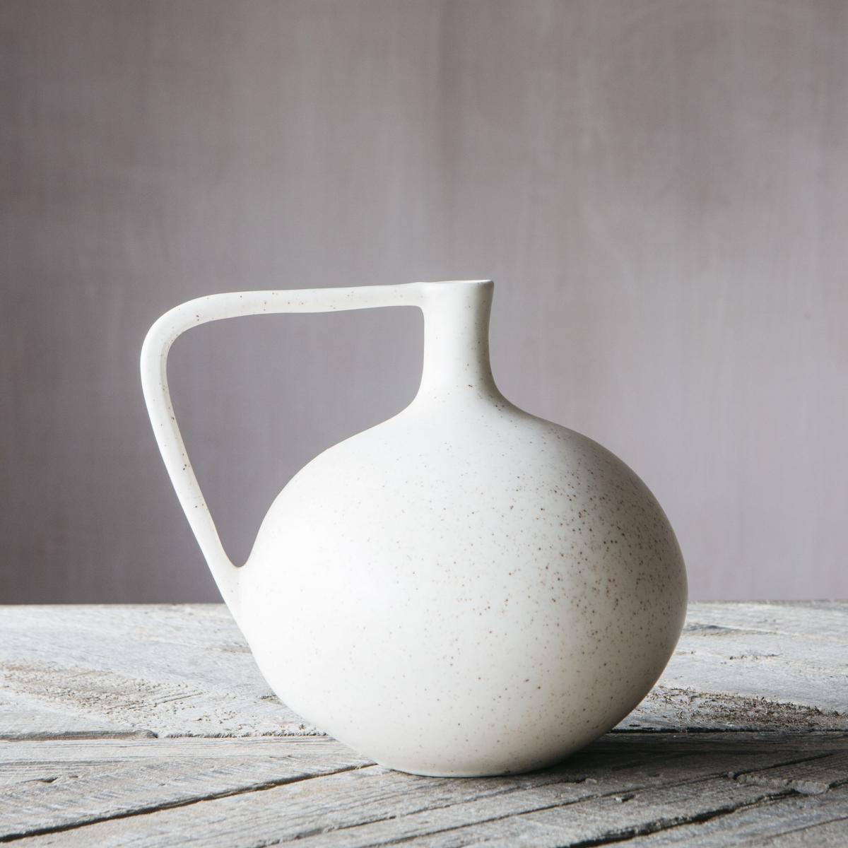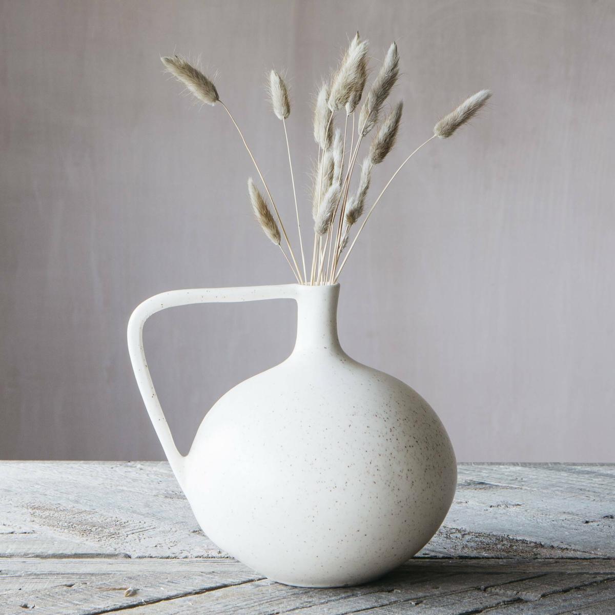 The silhouette of this speckled jug is Grecian-inspired and makes it ideal for Mediterranean dining. Alternatively, use as a contemporary vase for displaying single stem flowers.