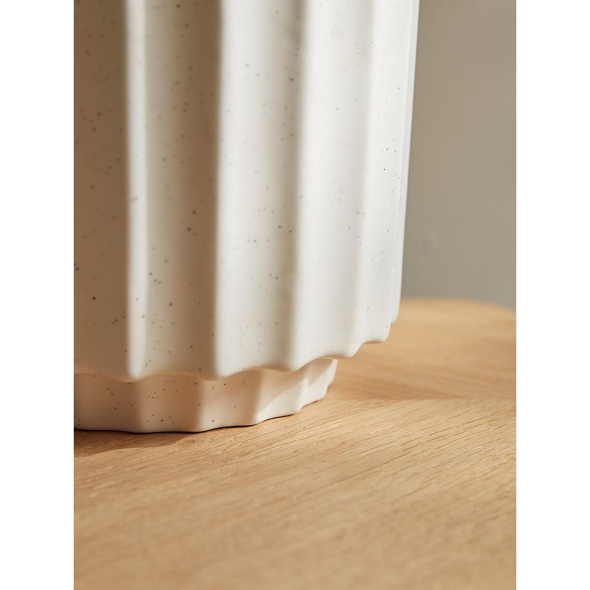With enough neutral appeal to grace any setting, our Speckled Fluted Planter has vertical scalloped detailing, adding depth and dimension, perfect as a statement piece in your home. With a structural element to it, the neutral tones add a softness to the square shape, creating a finish that radiates modern elegance.