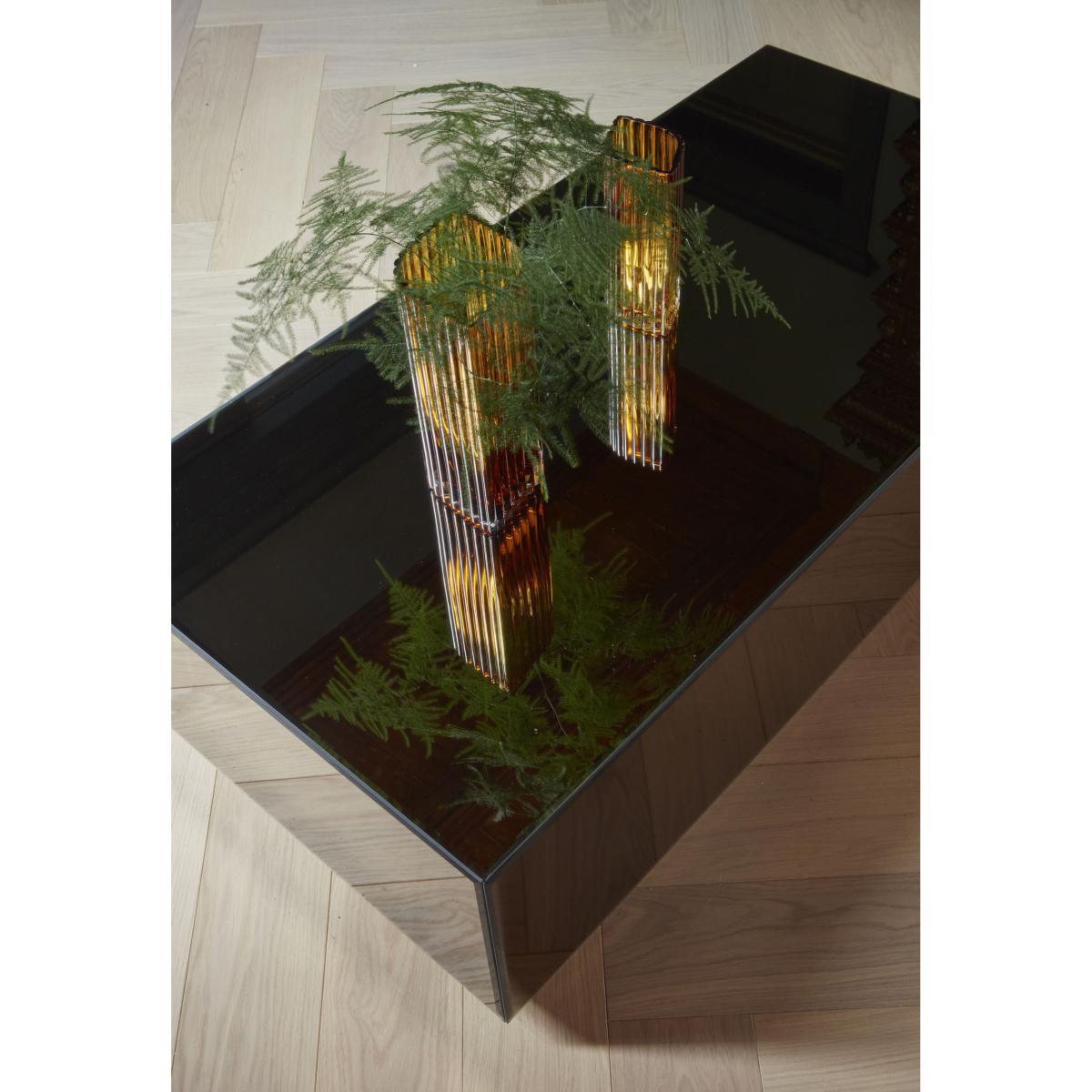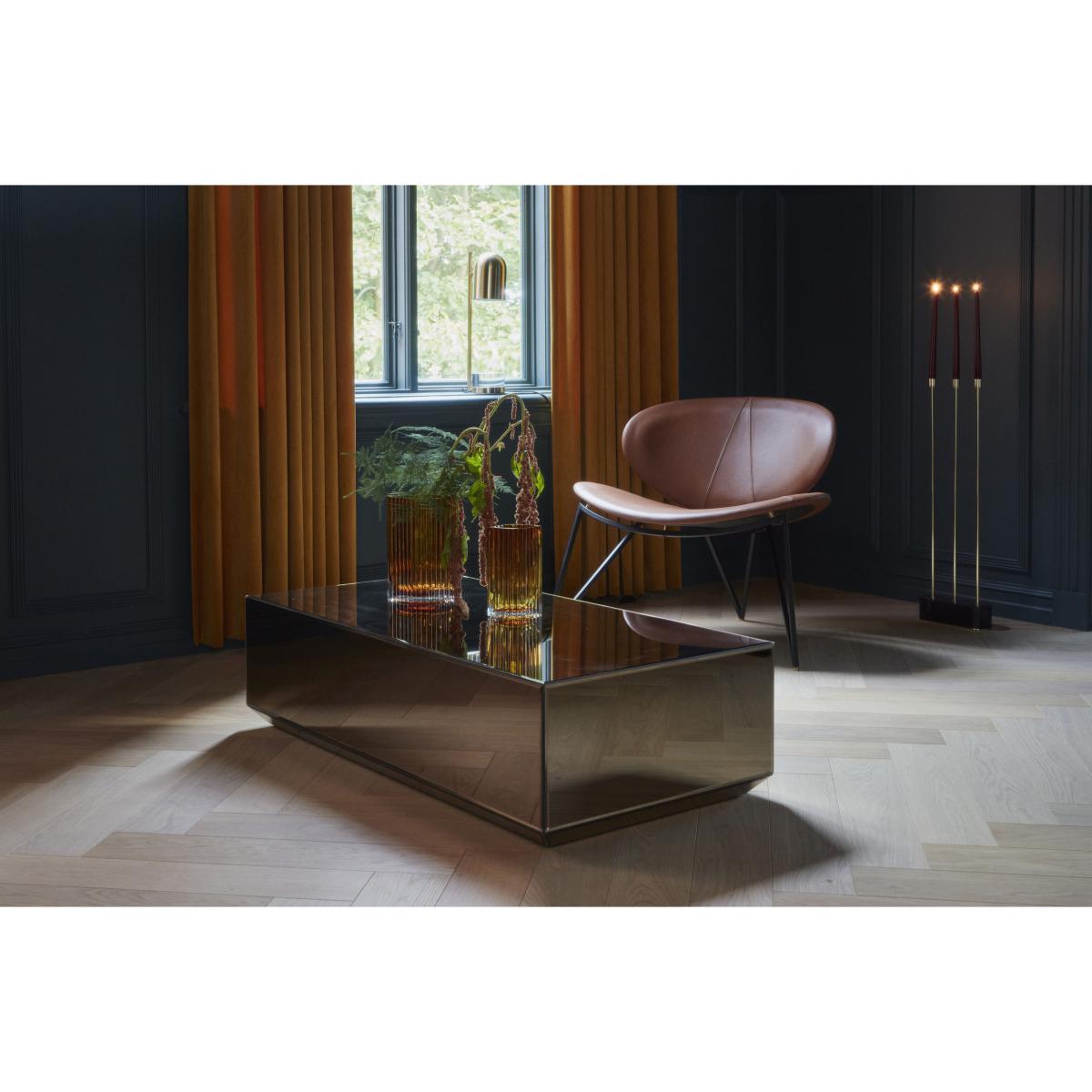 Simultaneously luxurious and minimalistic, this elegant coffee table is sure to add a refined touch to your décor. This large rectangle has been made entirely from glass with a mirror finish, which reflects its surroundings: a chameleon piece, veiled in mystery! Speculum plunges us into the world of magic and the attraction of reflective materials: the world is projected within, reflected, recreated… It’s a living picture that transforms and evolves according to what’s around it. The bevelled corners of the base catch the light and reflect it to give Speculum a spectacular shine.