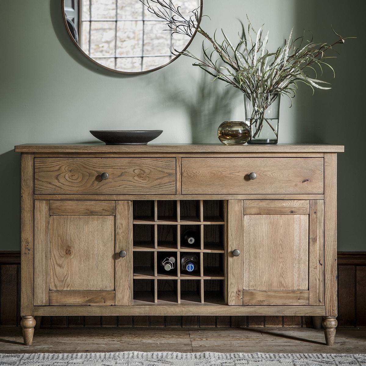 I really like this sideboard’s natural oak finish-it adds warmth and character to a variety of interiors, from rustic country homes to modern minimal spaces. Its practical design, with ample storage and dedicated wine compartments, makes it ideal for entertaining or everyday organisation. I’d suggest styling it with a mix of modern accessories and vintage pieces to create a layered look. For example, a simple vase or candle holder combined with a few select wine bottles on display can enhance its functionality without cluttering. It works beautifully in dining rooms, living areas, or even a spacious hallway, adding a touch of understated elegance while remaining highly functional.