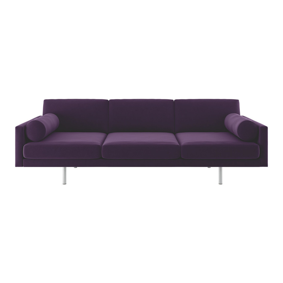 The luxurious Spencer purple velvet 4 seater sofa with metal legs is a sleek design that combines a slender, streamlined shape with soft cushions and 2 feather-filled bolsters. Designed by and exclusive to Habitat, the Italian-made Spencer range comprises various sized sofas and an armchair in 3 types of leather, 3 types of fabric and in a choice of oak or metal legs.