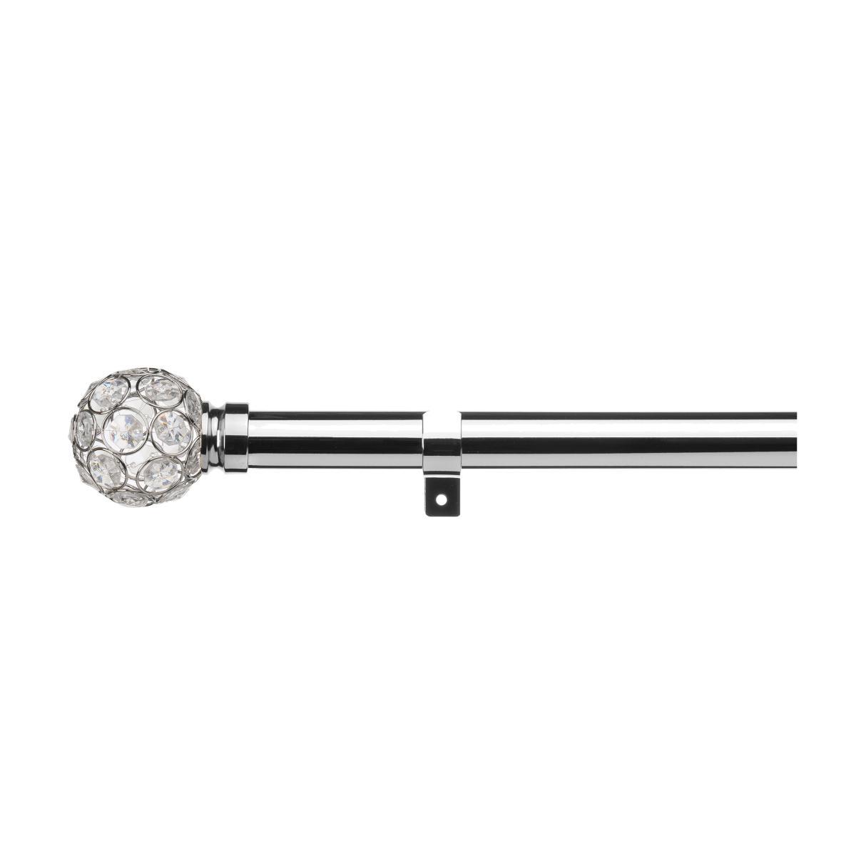 Finished in a sleek chrome, this fixed curtain pole is complete with stunning diamante bead ball finials and comes with all fixings and instructions included. This pole is 28mm in diameter. Curtain rings sold separately. Please note: All curtain poles in lengths of 240cm and above come in two lengths with a joiner and three brackets. Please note: the pole length stated does not include the finials. Please allow up to an additional 20cm to the pole length to accommodate the finials.