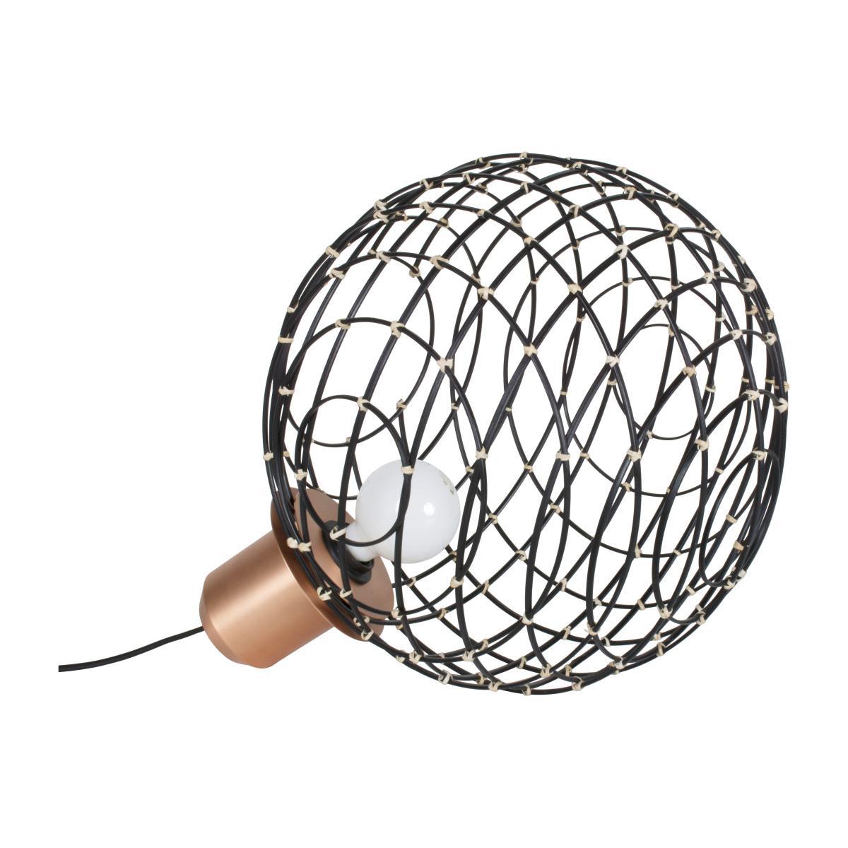 This lamp, created by the famous Israeli designer Arik Levy, boasts a surprising mixture of materials and styles. The threadlike, floaty sphere crafted from bamboo twigs is handcrafted, in a reinterpretation of the traditional weaving technique but in a more contemporary spirit. The geometric shape and modern colours lend a decidedly modern feel. The bamboo sphere rests on an elegant coppered metal base that has a retro-style dimmer. The lampshade offers a balanced, harmonious volume of a surprising mathematical nature. Sphere offers a graphic effect, evoking the path of an object orbiting around a star. The light filters through a multitude of bamboo twigs, projecting delicate, dancing shadows over the walls.