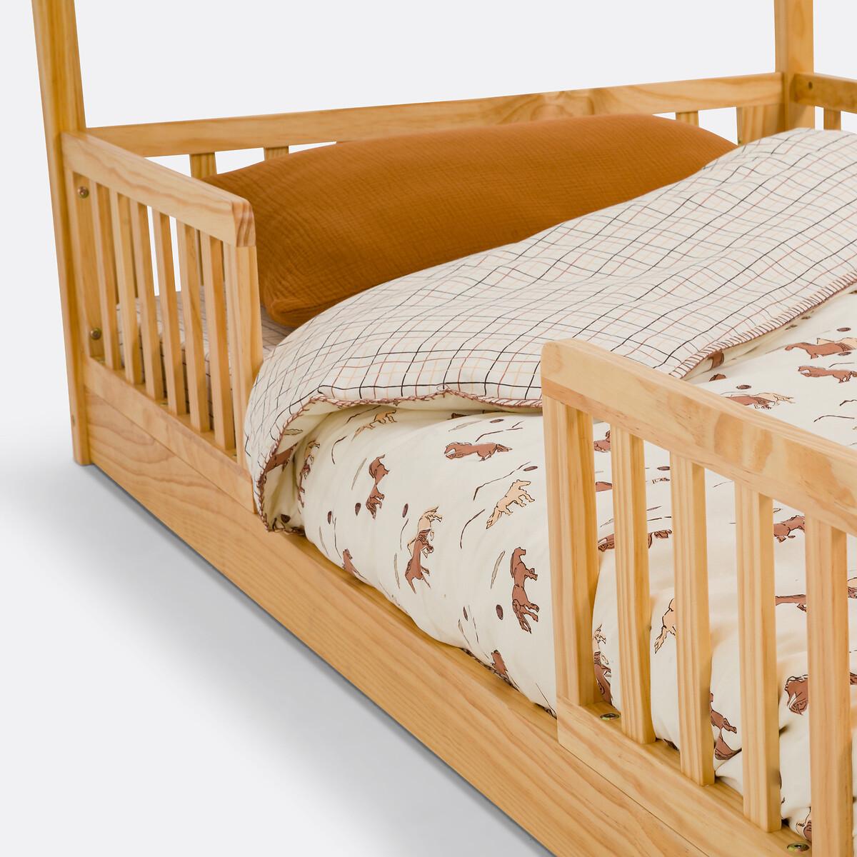 Because it is positioned low to the ground and surrounded by barriers, the Spidou cabin bed in FSC®-certified solid pine allows your child to sleep and play in safety. When learning becomes fun!Product Details • FSC® certified solid pine structure • Sleeping area 90 x 200cm • Supplied with slatted base in raw solid pine, to be unrolled on the interior frame of the bed. Easy to construct. • Recommended mattress height up to 14cm. To move your bed, we advise you to lift it and not push or pull it. Quality Info • This product complies with current safety requirements. Dimensions • Width: 97cm • Height: 151.5cm • Length: 208cm • Barrier height: 25cm (38cm including mattress) • Weight: 30.1kg • Assembly required. • WOOD FROM SUSTAINABLY MANAGED FORESTS. FSC® certified wood comes from forests that are environmentally, socially and economically well managed. Parcel dimensions and weight1 parcel • L209 x H15.5 x D51.5cm. 32.14kg.