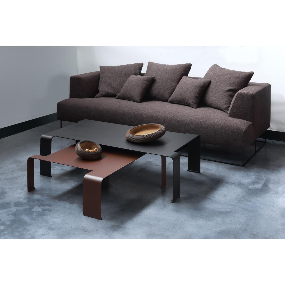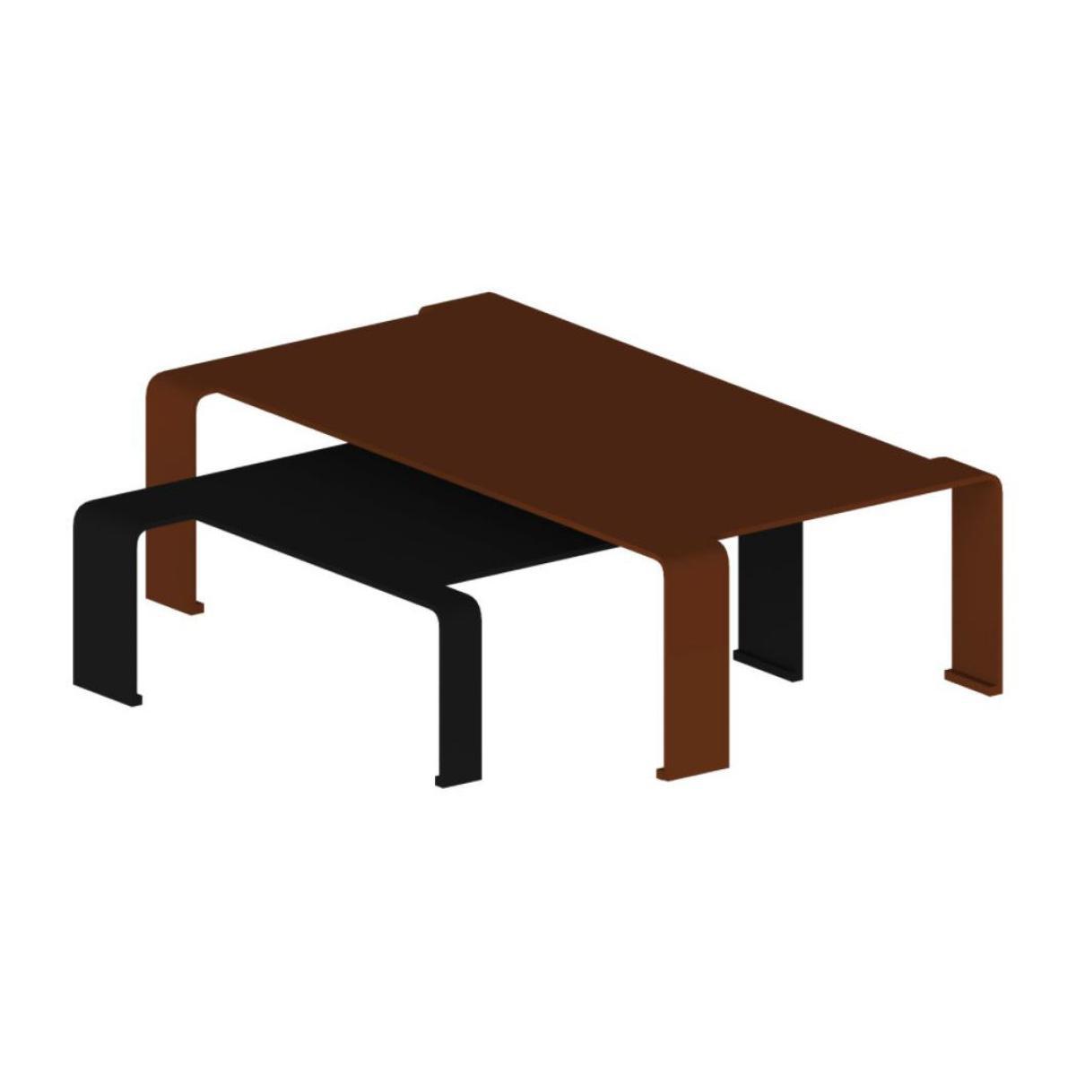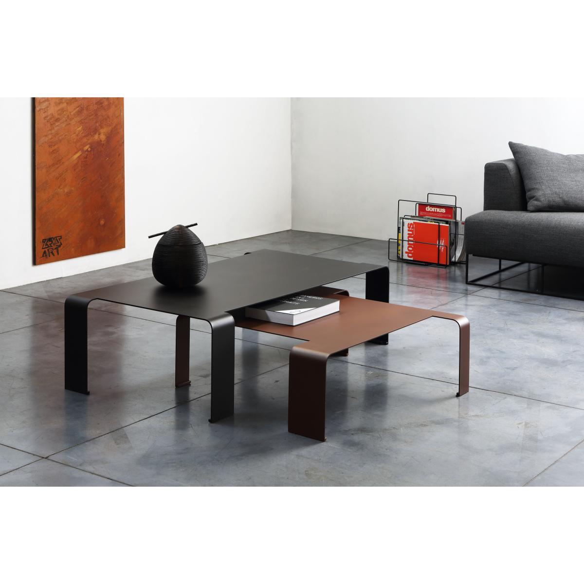The Spin collection includes two steel coffee tables of different dimensions that can be stacked to form a graphic whole. These coffee tables are characterised by the asymmetrical arrangement of the legs which brings character and originality to the silhouette. The sheet steel structure is very fine and ultra-ethereal. With their sleek aesthetic and timeless nature, these coffee tables fit into modern interiors just as well as more classic ones. Spin completely corresponds to the philosophy of the ZEUS brand: creating items which are simple, authentic, functional and economic. A quest for the essential achieved with total control over materials. Zeus furniture is made by skilled craftsmen in Italy, near Modena. Each piece is made by hand: the metal is cut, assembled, welded and painted by hand. Each item is unique. Steel is a recyclable material and any metal scrap not used during manufacturing is recycled for re-use. Zeus furniture is built to last: highly durable, this furniture can be handed down from generation to generation.