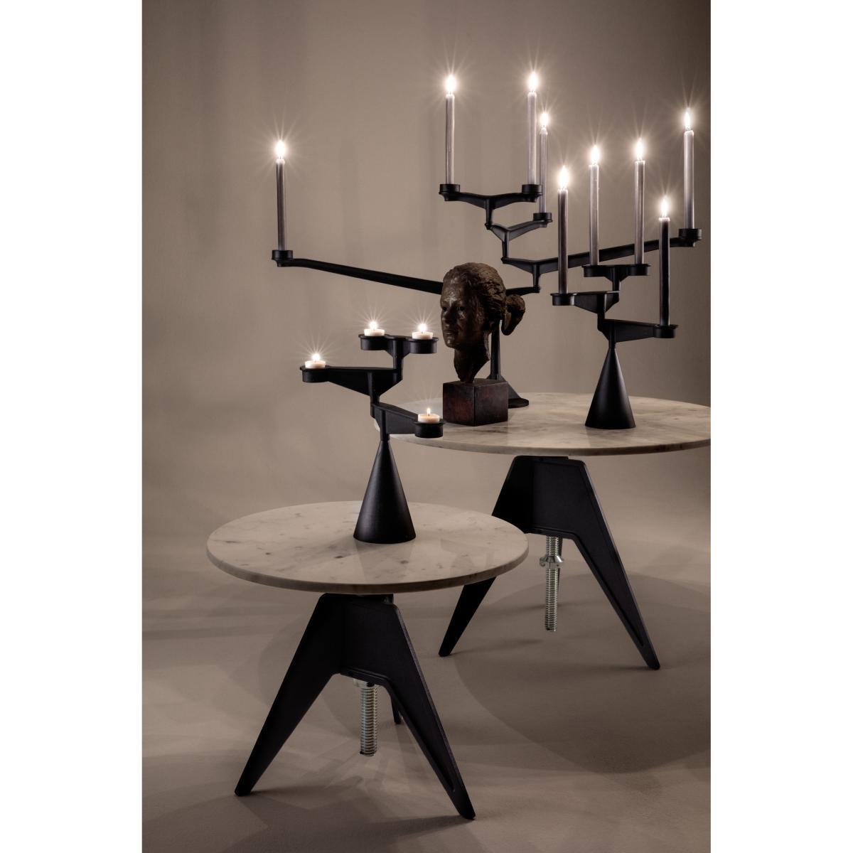 The “Spin” candelabra is made of cast iron: a robust metal that evokes the industrial world. The three articulated arms illustrate Tom Dixon's taste for machinery and gears. Depending on how you arrange the arms, the “Spin” can take on different shapes and sizes! This sculptural candelabra resembles a mobile and sounds like a tribute to American sculptor Alexander Calder. Designer Tom Dixon was also inspired by the heavy metal frames used for constructing bridges dating back to the Victorian era. This candlestick is suitable for both long candles and tealights.