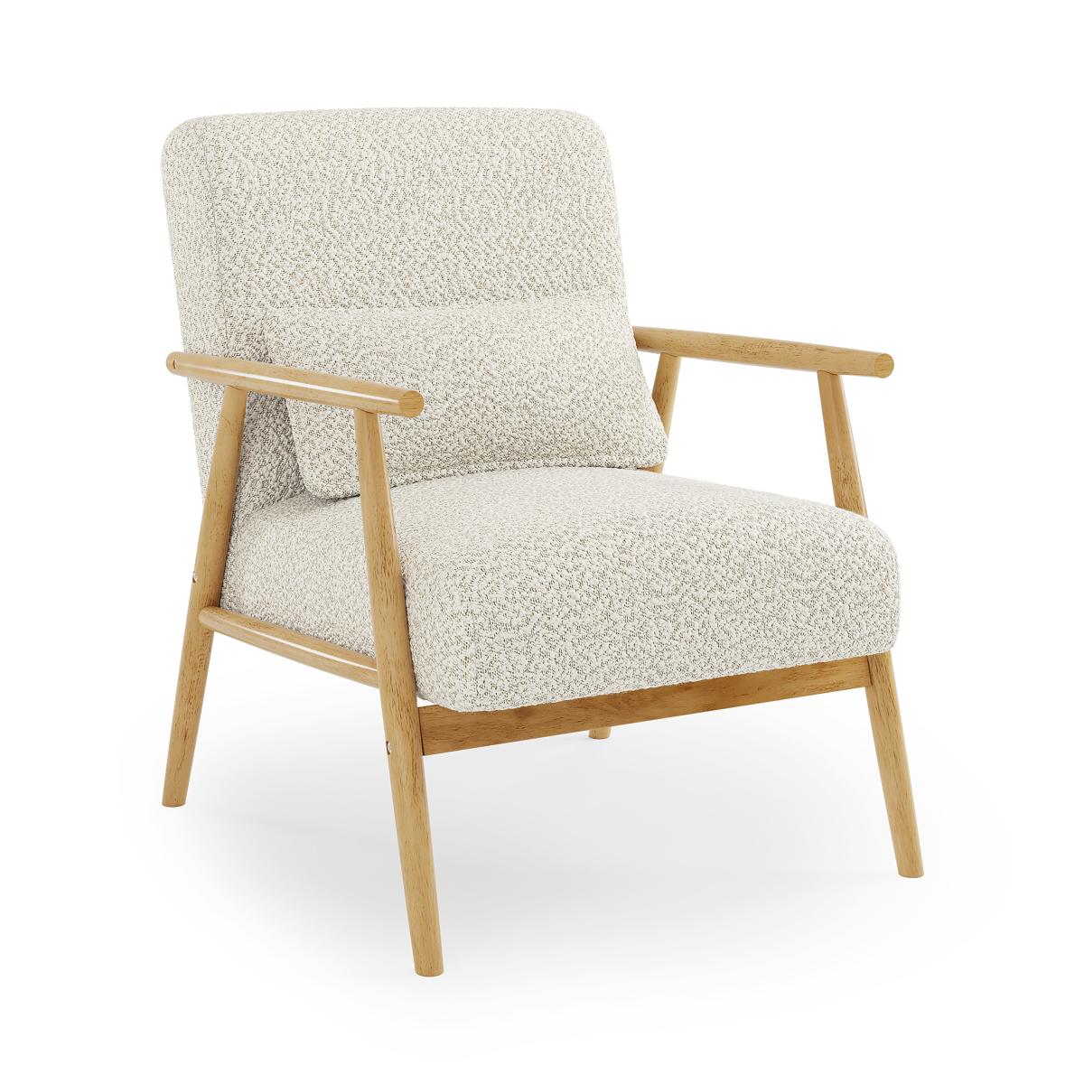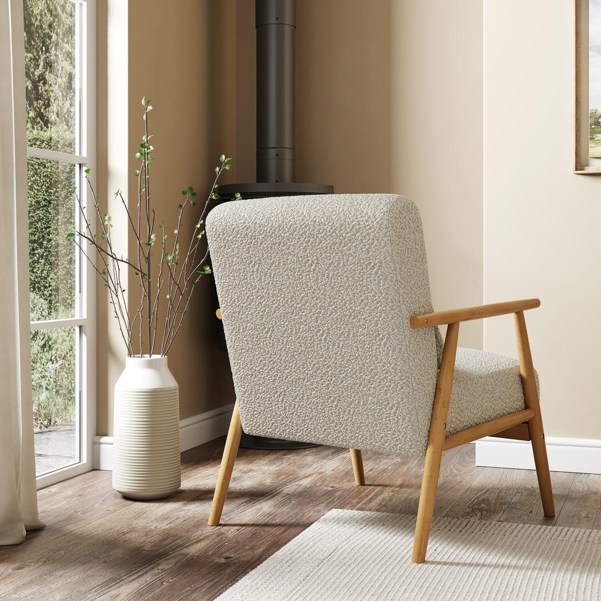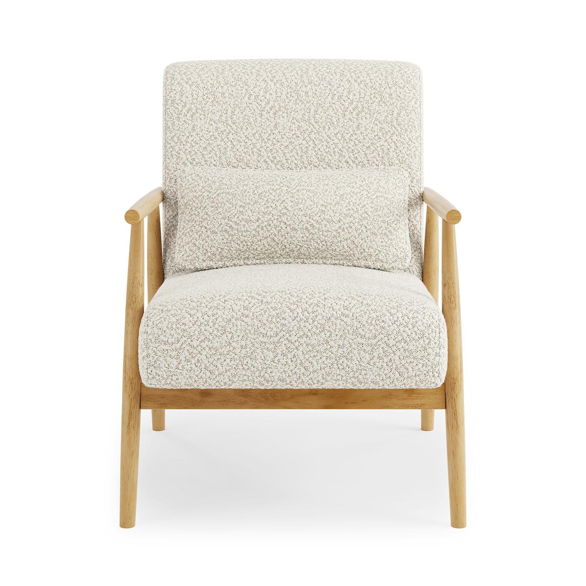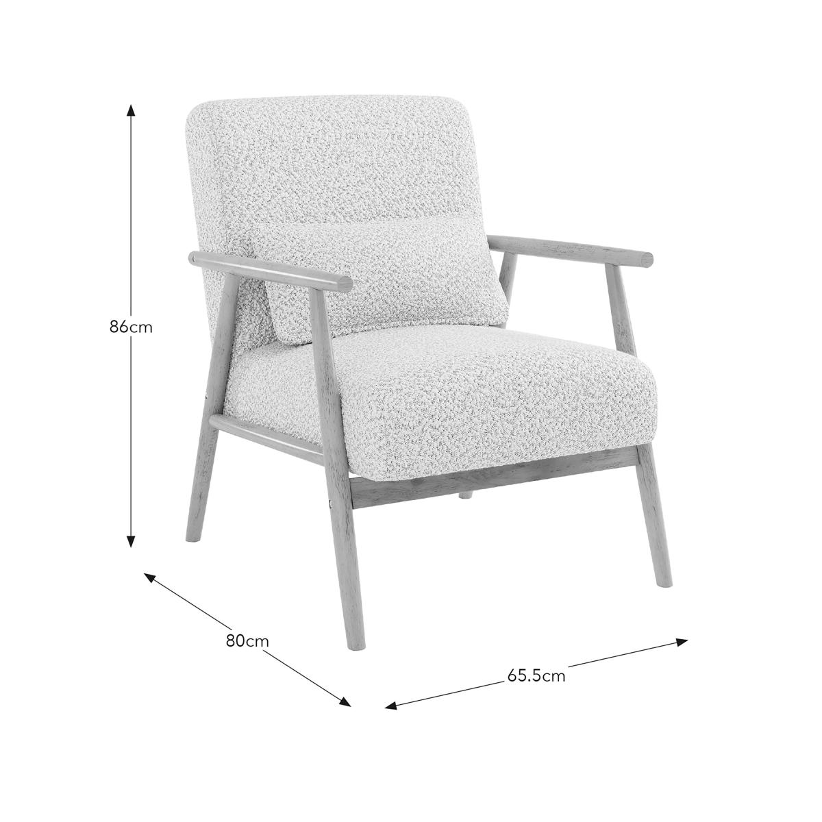 Elevate your 'chillaxing' experience with this exquisite, on-trend armchair that combines style, comfort, and quality. Upholstered in a warm and soft boucle fabric available in other colourways, the Spindle armchair exudes luxury and invites you to unwind. Its compact and contemporary design stands out in any living space, while the foam and fibre-filled seat and backrest provide incredible support. The chair's light rubberwood finished hardwood base adds a touch of sophistication to brighten up your lounging area. Available in various shades.