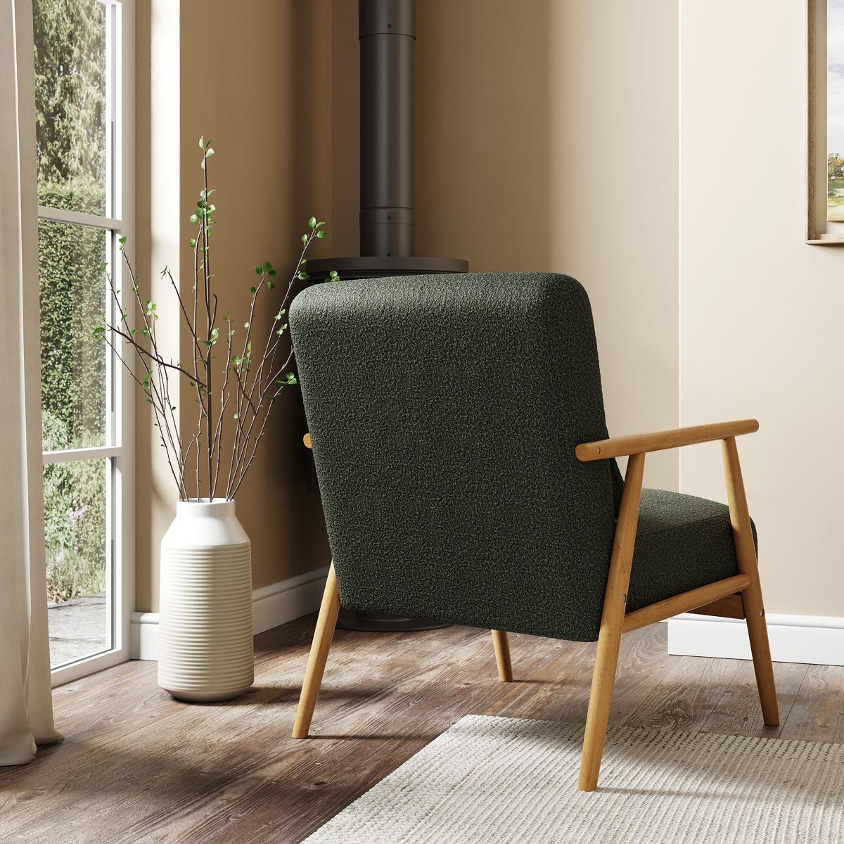 The Spindle Boucle Chair in olive is a versatile accent piece that adds a touch of warmth and character to a variety of interiors. I love how its muted green tone offers a subtle pop of colour without overwhelming the space, making it ideal for both modern and vintage-inspired rooms. It works particularly well in cosy living rooms, reading nooks, or even bedrooms as a statement side chair. For styling tips, consider pairing it with natural textures like wooden side tables or woven rugs to enhance its organic appeal. Keep the surrounding decor simple to let the chair stand out, or complement it with soft cushions and throws in neutral or earthy tones for a layered, inviting look.