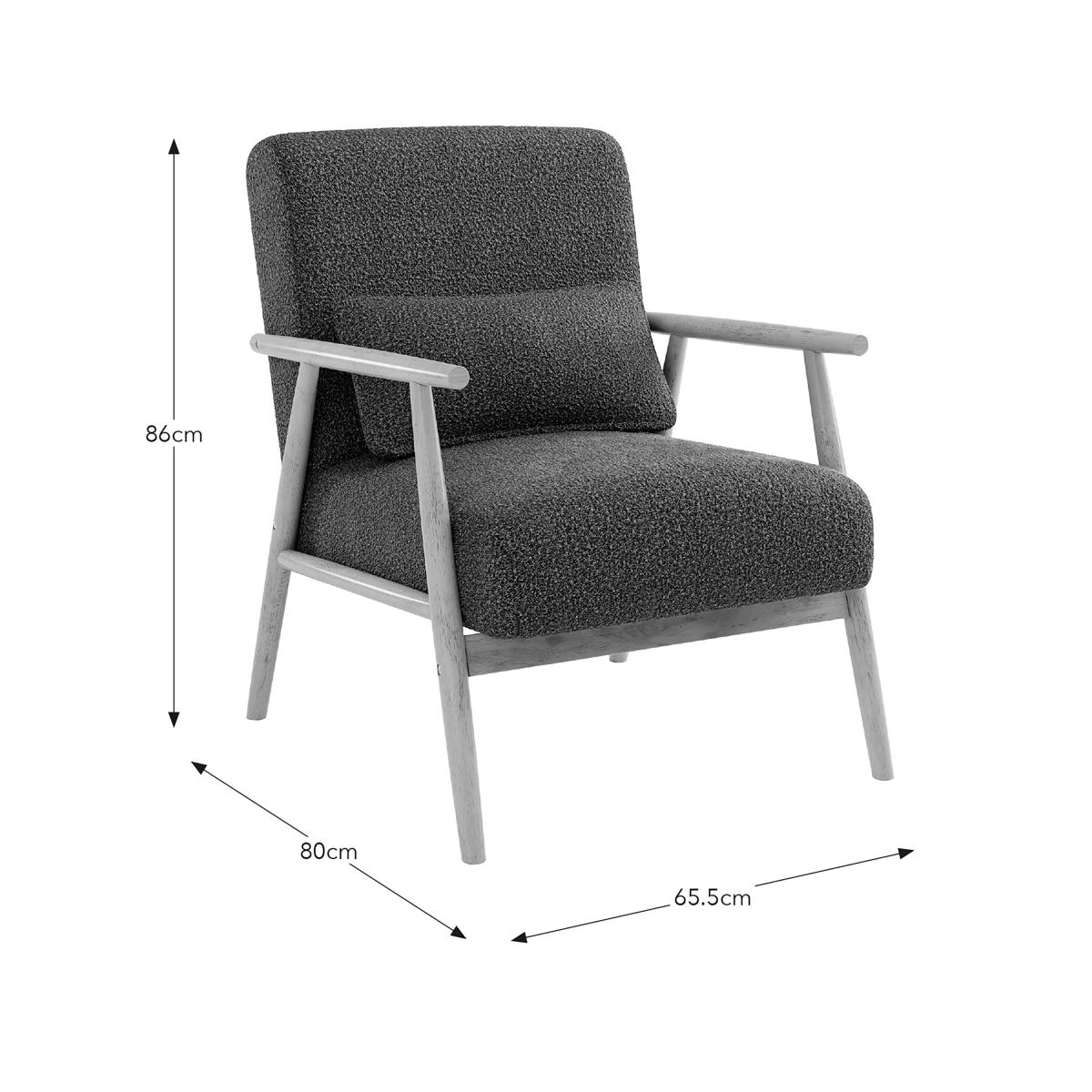 Elevate your 'chillaxing' experience with this exquisite, on-trend armchair that combines style, comfort, and quality. Upholstered in a warm and soft boucle fabric available in other colourways, the Spindle armchair exudes luxury and invites you to unwind. Its compact and contemporary design stands out in any living space, while the foam and fibre-filled seat and backrest provide incredible support. The chair's light rubberwood finished hardwood base adds a touch of sophistication to brighten up your lounging area. Available in various shades.