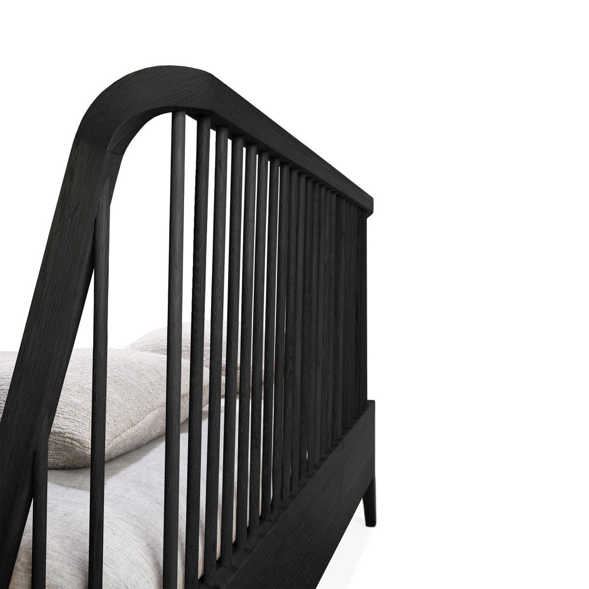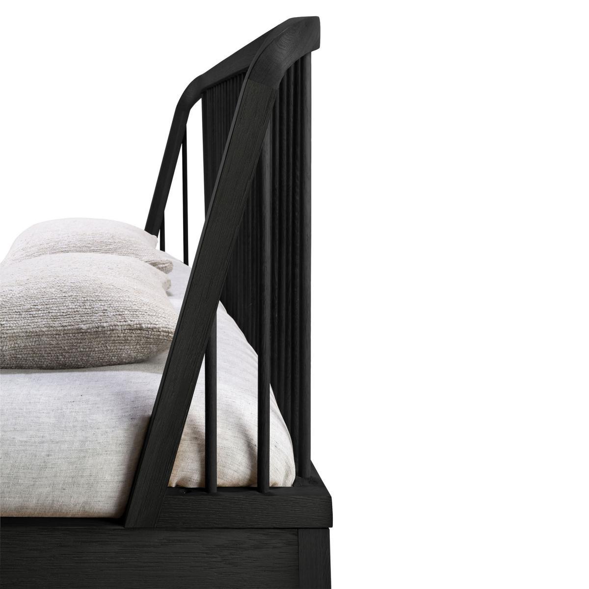 For twenty-five years, Belgian brand Ethnicraft has paid tribute to the beauty and authenticity of solid wood. Timeless, extremely strong and durable, these are quality pieces of furniture that age wonderfully and are passed down from generation to generation. Hand-crafted, Ethnicraft furniture is the result of exceptional know-how. Behind the apparent simplicity of the design hides a constant search for innovation. Integrating advanced techniques into the creative process, each new design is worked out down to the smallest detail. Entirely made of black-stained solid oak, Spindle is a double bed with a clean look and authentic charm. It’s inspired by traditional spinning wheels used to spin wool, integrating its spokes perfectly aligned into the headboard. You’ll love the graphic effect of this assembly of wooden spindles forming an openwork structure, rhythmic, balanced and airy. The simple lines of the Spindle bed demonstrate exceptional woodworking. PLEASE NOTE: This bed is suitable for a mattress 160 x 200 cm (mattress not included). Bed bases aren’t included: it’s sold separately. This 160 x 200 cm Spindle double bed requires two 80 x 200 cm bed bases.