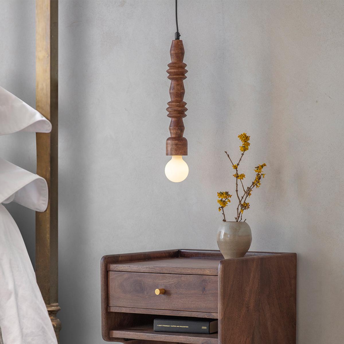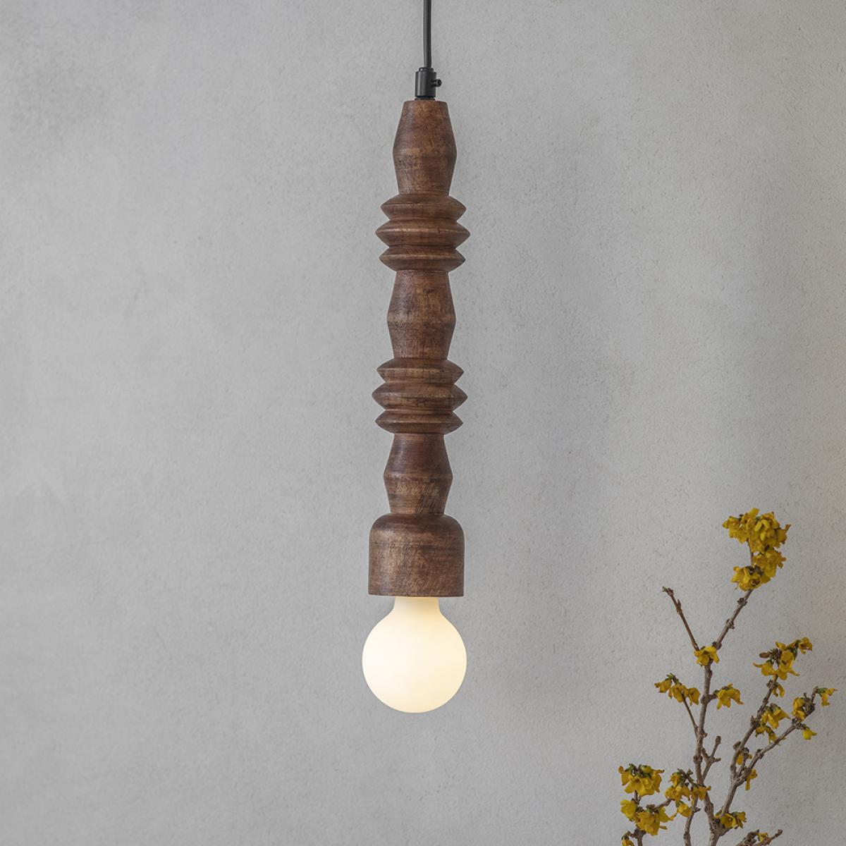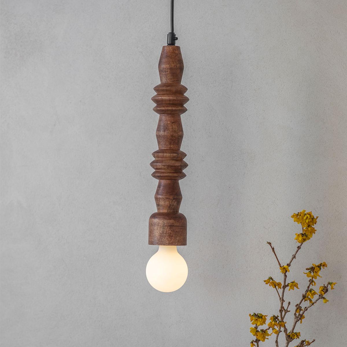 Our Spindle Pendant Light is made from sustainable solid mango wood and is hand crafted for a contemporary take on the on-trend bare bulb look. Ideal for hanging over bedside tables, a kitchen island or breakfast bar, it looks striking when hung as a single pendant light or it can be used to create extra impact when hung in a cluster or row of three. The Spindle Pendant Light comes in a natural or black finish and also looks spectacular when hung either side of a bed. Use one colour, natural or black, or mix and match different finishes for added appeal. The pendant also looks wonderful when hung at different lengths. Its textural and sculptural shape hangs beautifully in any room, creating ambient or task lighting where and when needed. The artisan look and feel is the perfect blend of classic and contemporary style while its knobbly design brings a tactile element to any décor.
