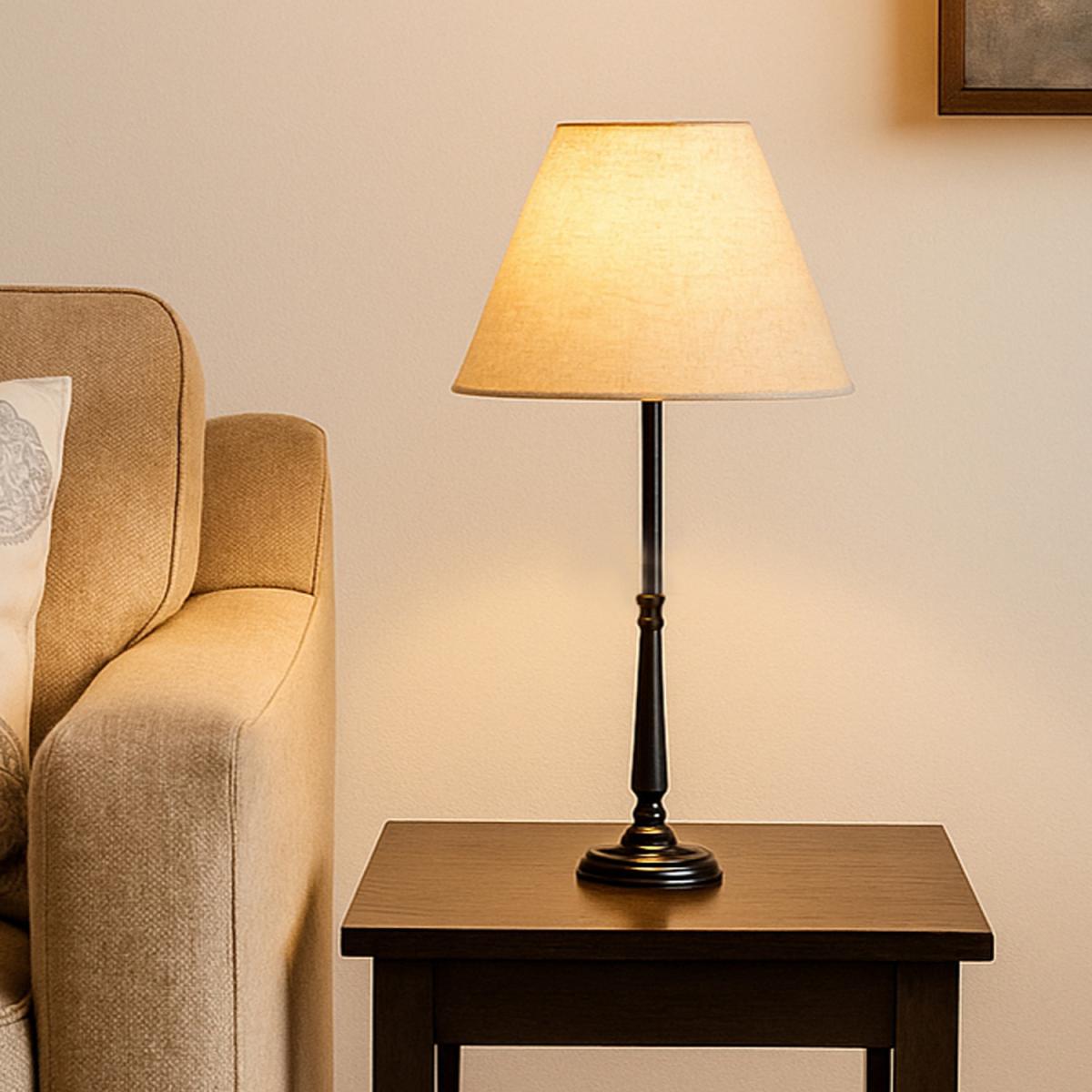 This elegant table lamp features a spindle-style black base paired with a neutral square fabric shade. Blending classic design with modern simplicity, it provides warm ambient lighting and a timeless accent for living rooms, bedrooms, or offices.
