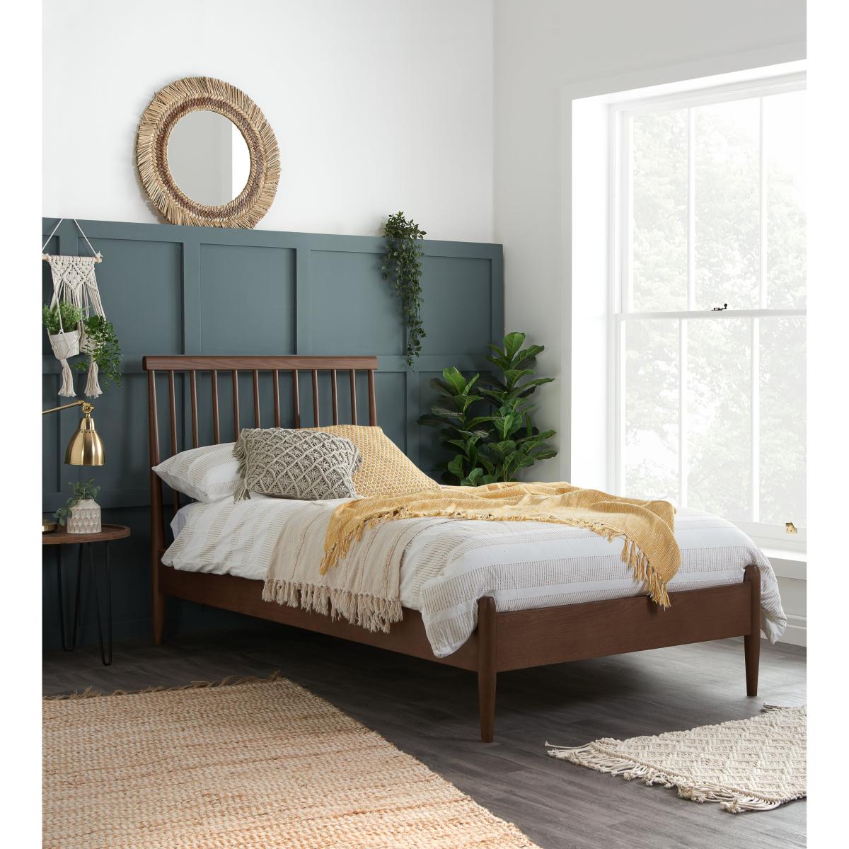 I love the Spindle Wooden Bed in dark brown for its timeless appeal and versatility. Its classic spindle design adds subtle texture without overpowering a room, making it suitable for both modern and traditional interiors. It works particularly well in cosy, neutral spaces or when paired with warm earthy tones. To style it effectively, consider layering with a mix of textured bedding and adding cosy throws and cushions for an inviting look. Incorporating natural materials like a rattan mirror or woven rugs can enhance its understated charm, creating a warm and welcoming bedroom.