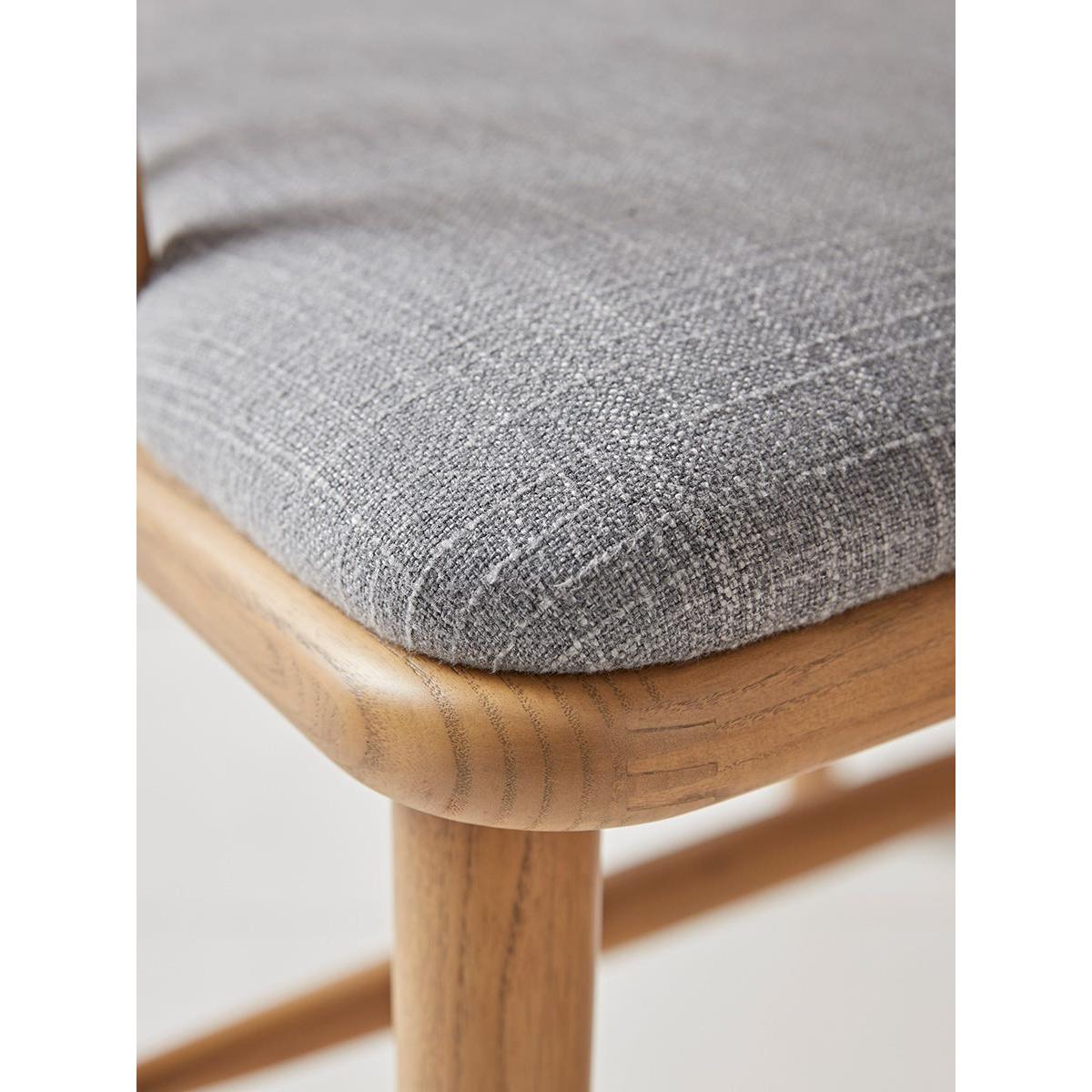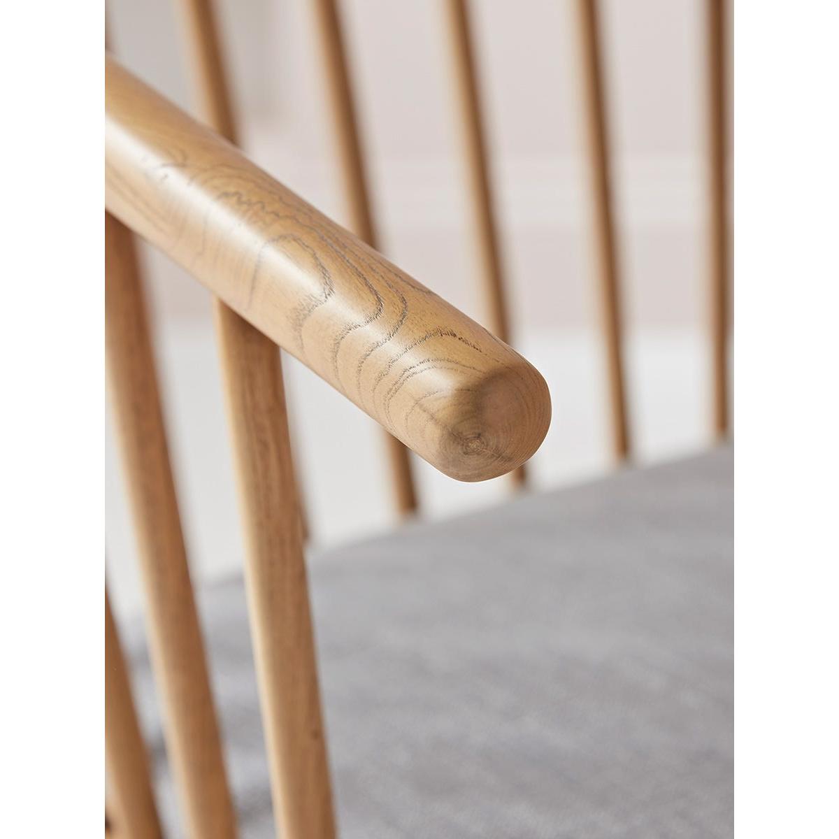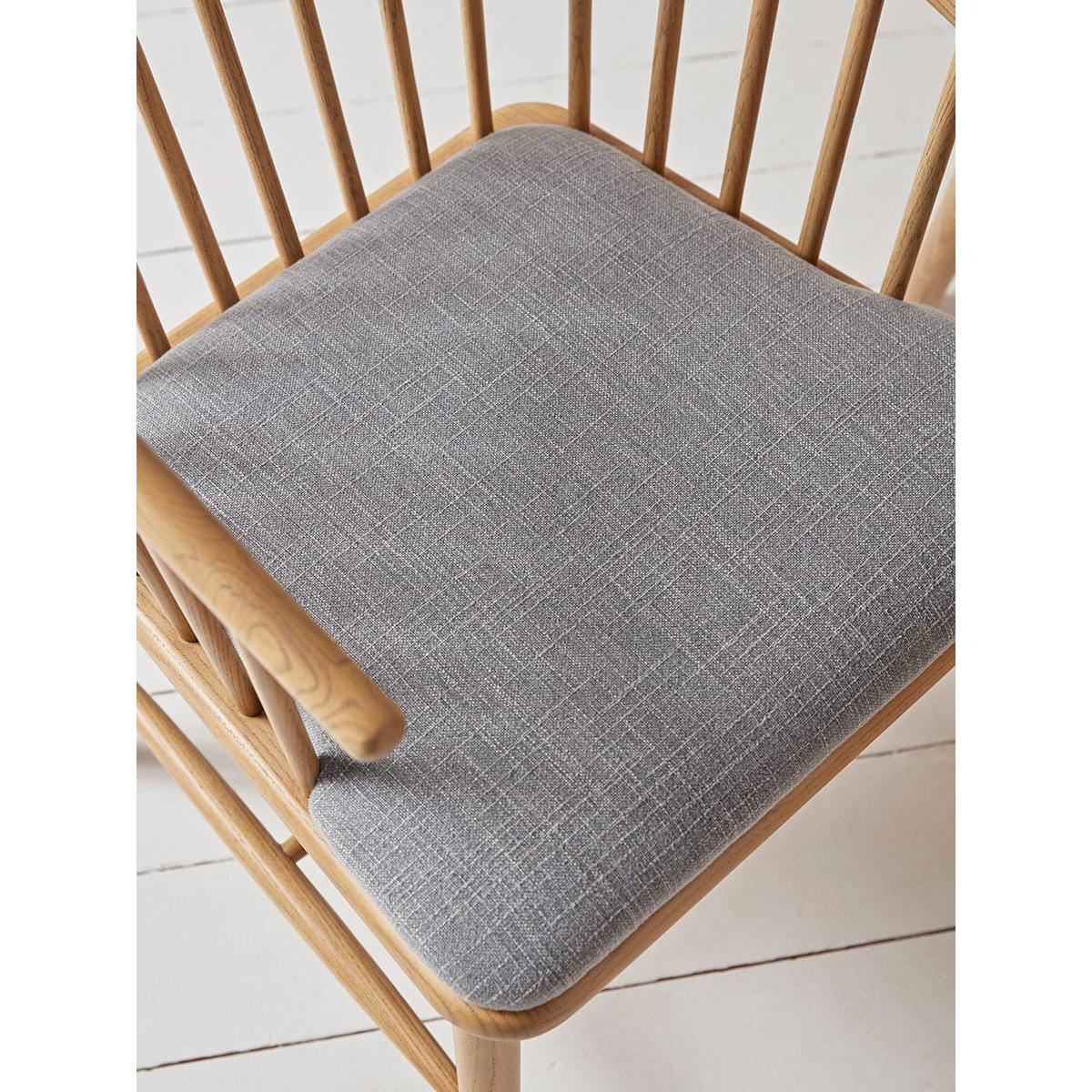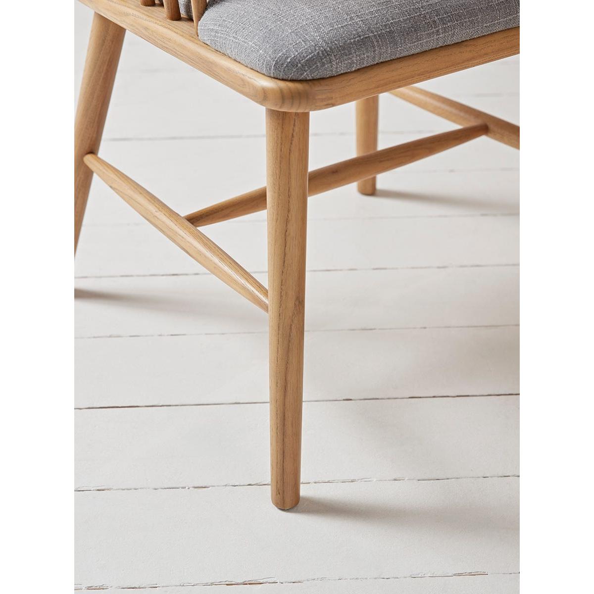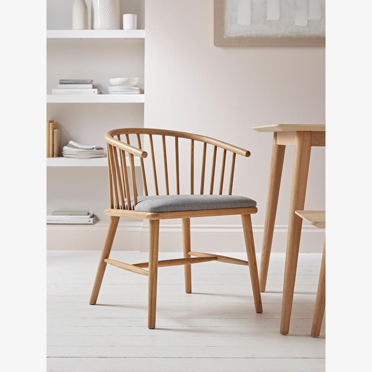 Combining the traditional elements of the spindle back, this dining chair has curved and rounded features to give a modern and clean finish. Paired with a grey upholstered seat pad, the calming palette and simple Scandi lines will grace any setting.