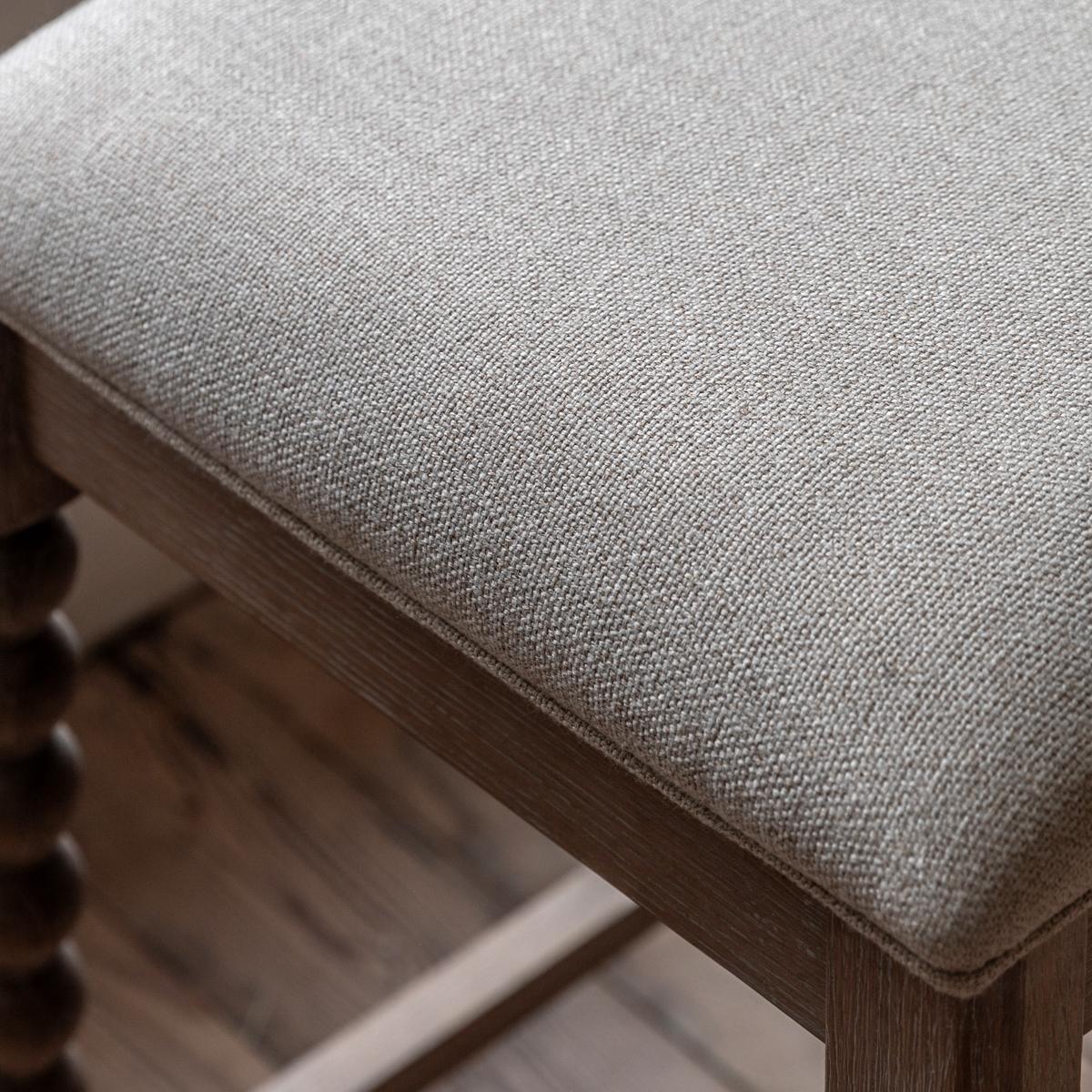 I’m a big fan of the Spindler stool for its bobbin-turned legs and softly upholstered seat - it brings just the right amount of detail without overpowering a space. Its pale oak finish and neutral linen cushion suit coastal, modern-Scandi or relaxed country kitchens, and it’s surprisingly versatile against bolder cabinet colours like deep navy or forest green. Styling tip: group two or three at a breakfast bar, drape a slim linen cushion over one for extra comfort and balance the look with a pair of simple brass-tone pendants. Because of its compact footprint, it also works well as a side table or occasional seat in a snug hallway or dressing area.