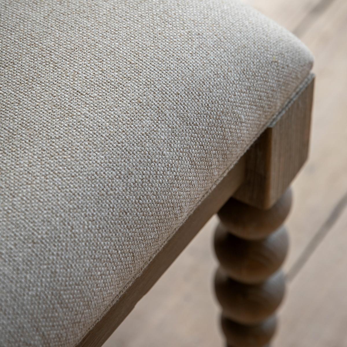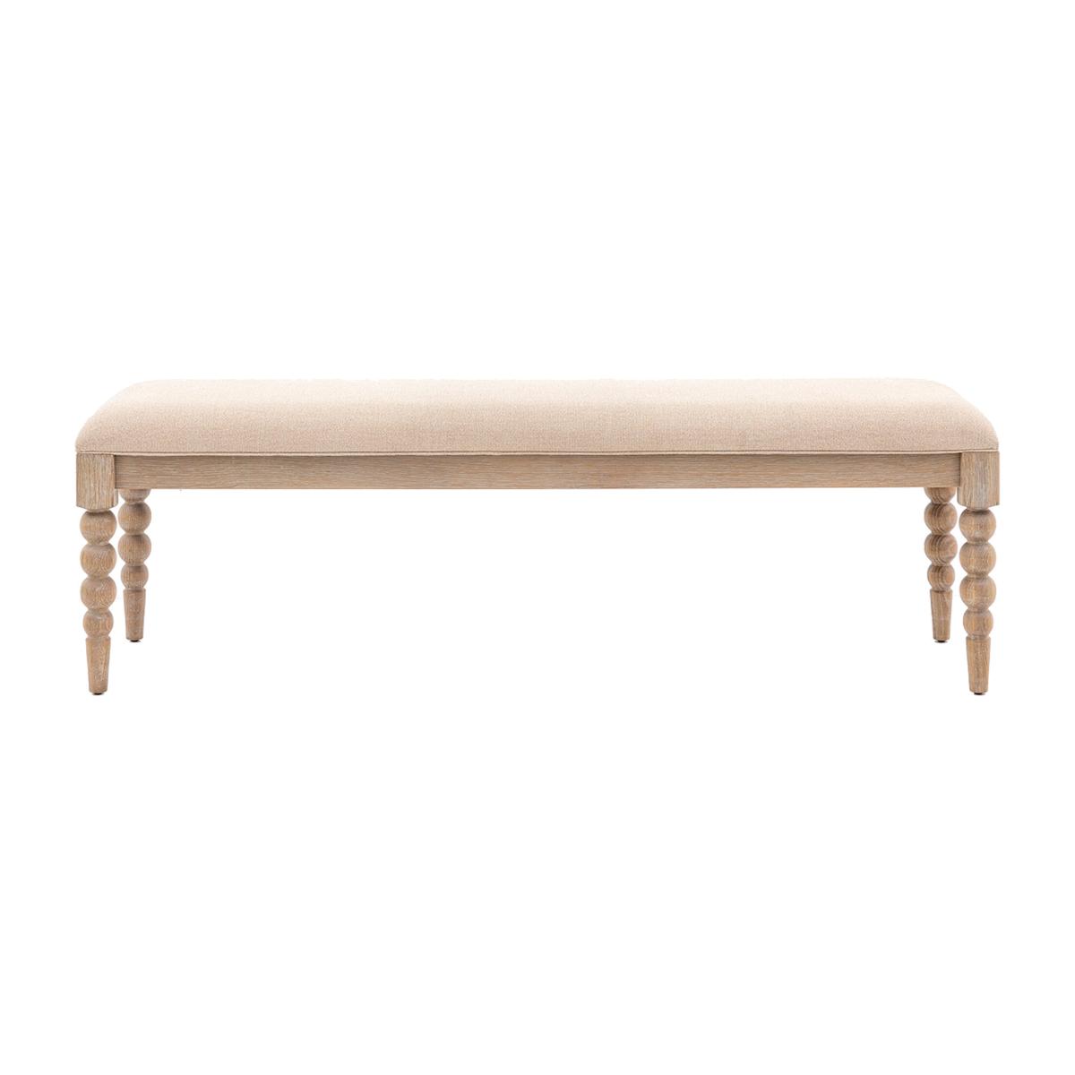 The Spindler range is the embodiment of traditional charm with a twist due to the intricate bobbing detailing and limewash finish. This dining bench seamlessly integrates into both traditional and contemporary settings.
