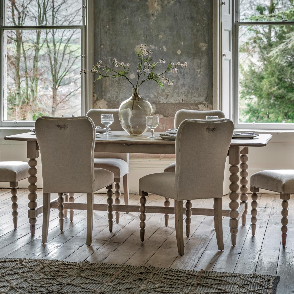 The Spindler range is the embodiment of traditional charm with a twist due to the intricate bobbing detailing. This dining table seamlessly integrates into both traditional and contemporary settings, making it a truly versatile piece.