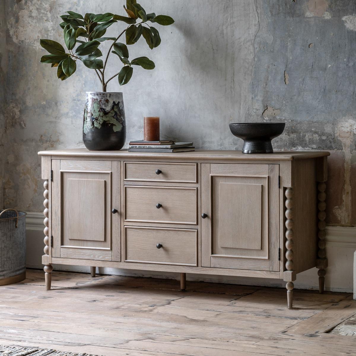 I’m a big fan of the Spindler for its clean lines and subtle turned‐spindle detailing - it adds just enough textural interest without overwhelming a room. Its oak‐effect finish and generous storage make it a natural fit for Scandi, coastal or modern farmhouse schemes, though it also works well in an eclectic lounge when paired with bolder accessories. Styling tip: treat the top as a small vignette - lean a mid‐sized mirror or framed print against the wall, then layer in a trio of ceramics in varying heights and a low planter for greenery. Keep books or baskets hidden behind the doors to maintain that neat, calm look.