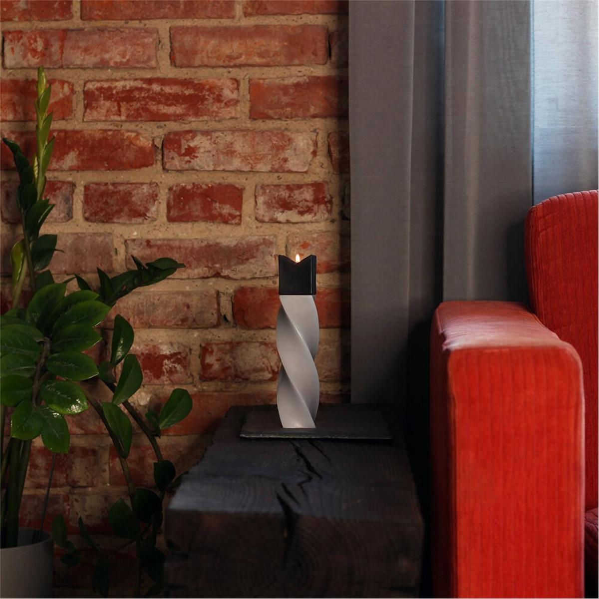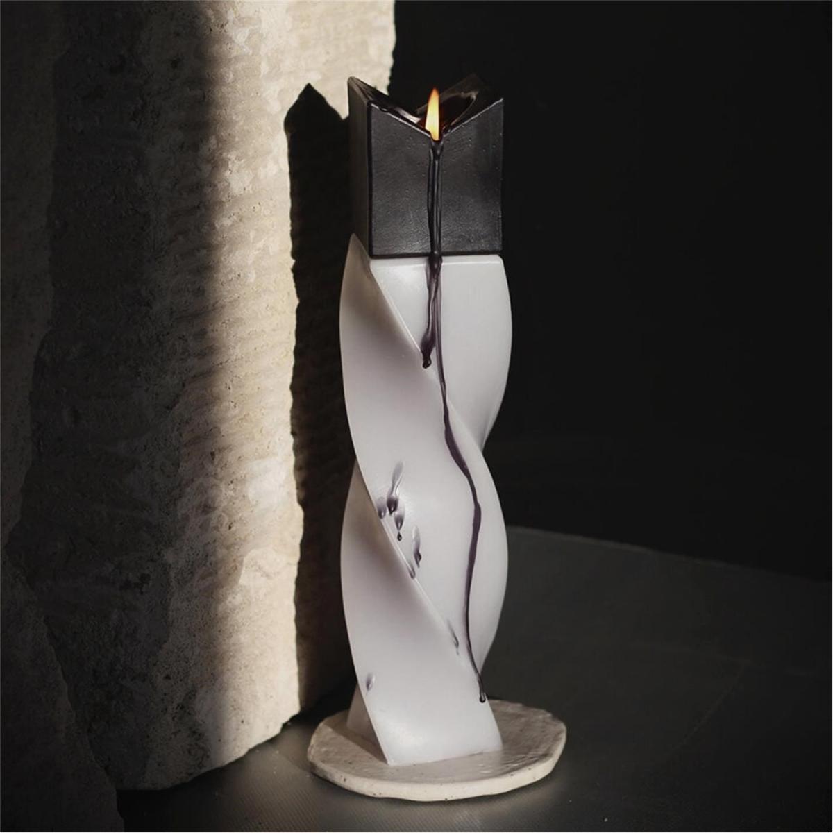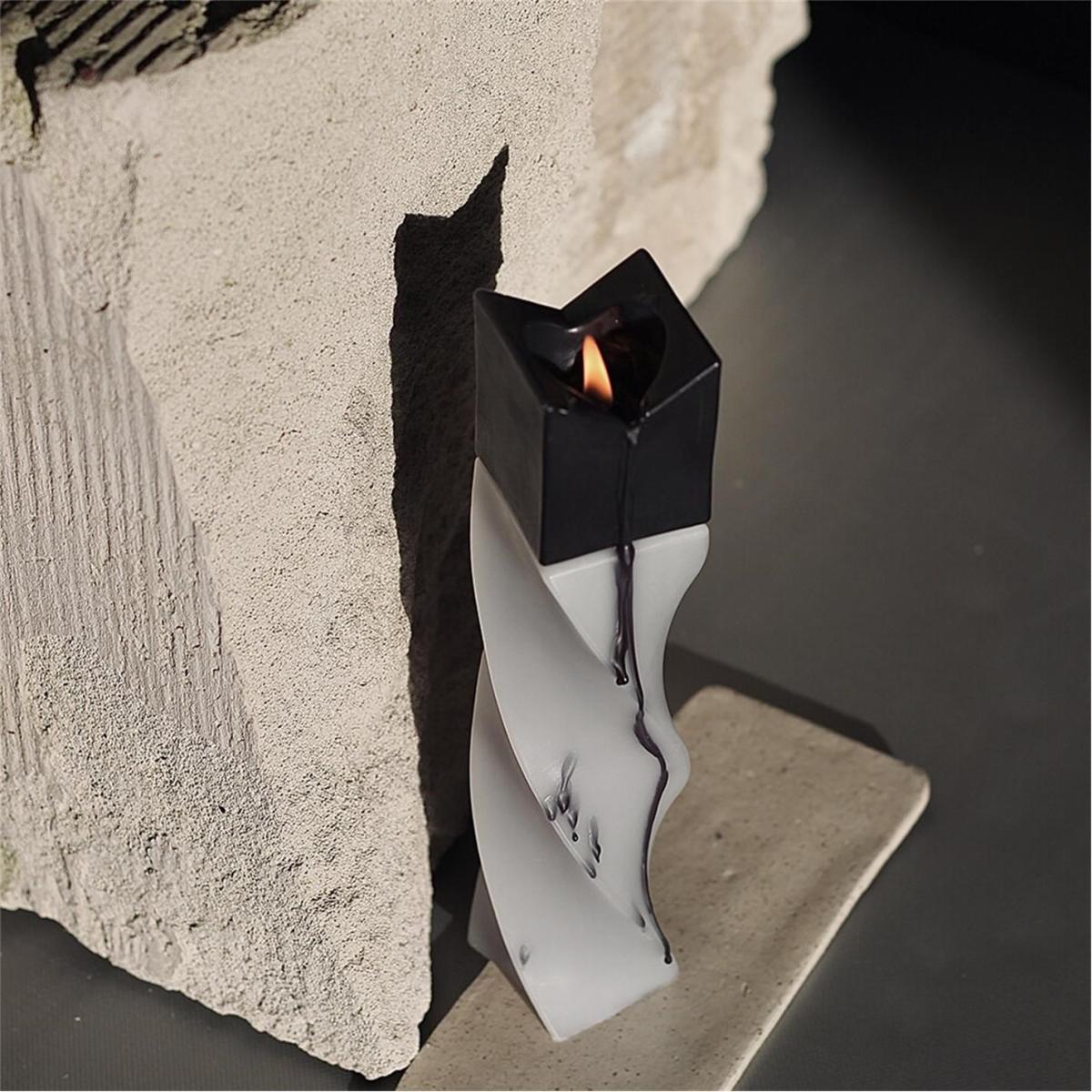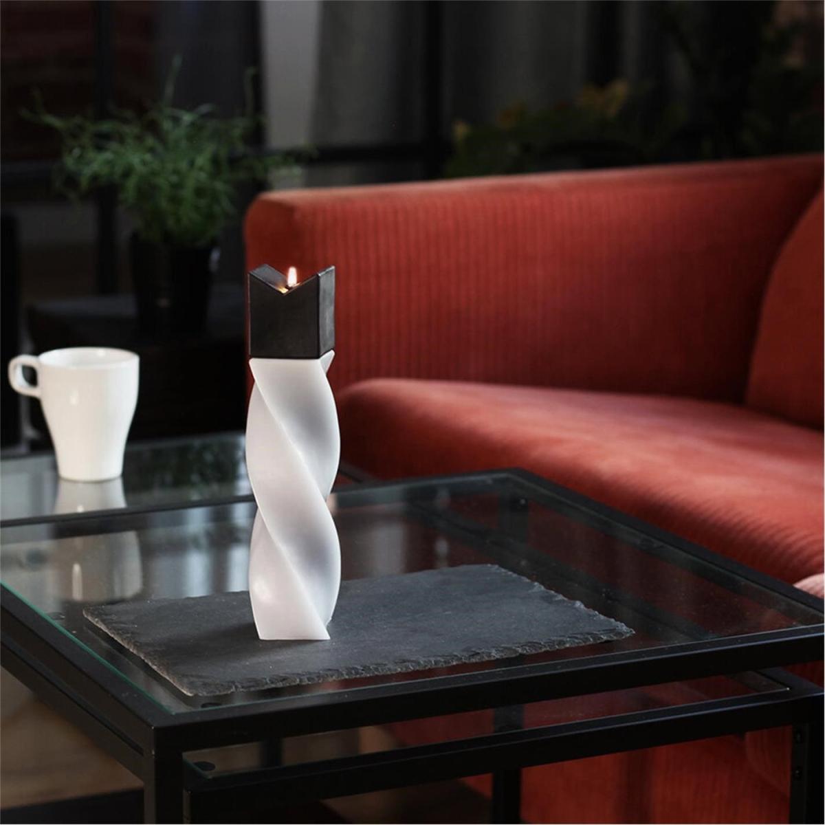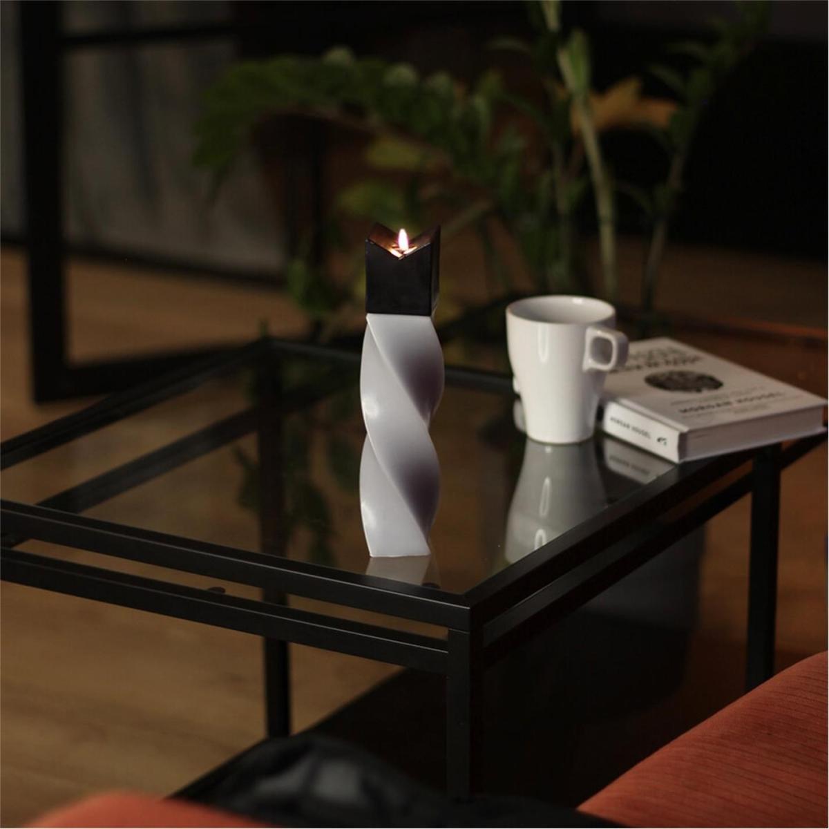 I’m a fan of the tilt candle for its clean lines and sculptural twist - it feels right at home in a minimalist or Scandi-inspired scheme, but its monochrome palette works equally well against exposed brick or concrete in an industrial loft. For styling, cluster two or three on a matte tray alongside a low vase of dried grasses or a stack of design books. It’s also effective as a lone accent on a floating shelf or breakfast bar, where its angular top adds just enough of a graphic edge without overwhelming the space.