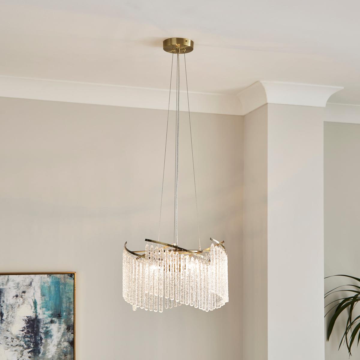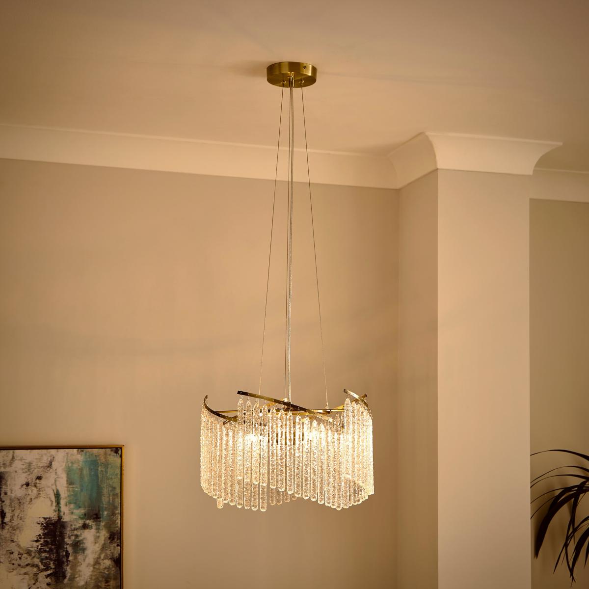 I love this classic ceiling light with its elegant glass design - it's versatile enough to elevate both modern and traditional interiors. It works particularly well in living rooms or dining areas where a statement piece can add a touch of sophistication. For styling tips, consider pairing it with minimalistic or contemporary furniture to let the light fixture stand out. Additionally, using warmer bulbs can create a cosy ambience, while brighter, cooler tones will enhance the crisp glass detail. This light is a great choice for adding visual interest without overwhelming the space.