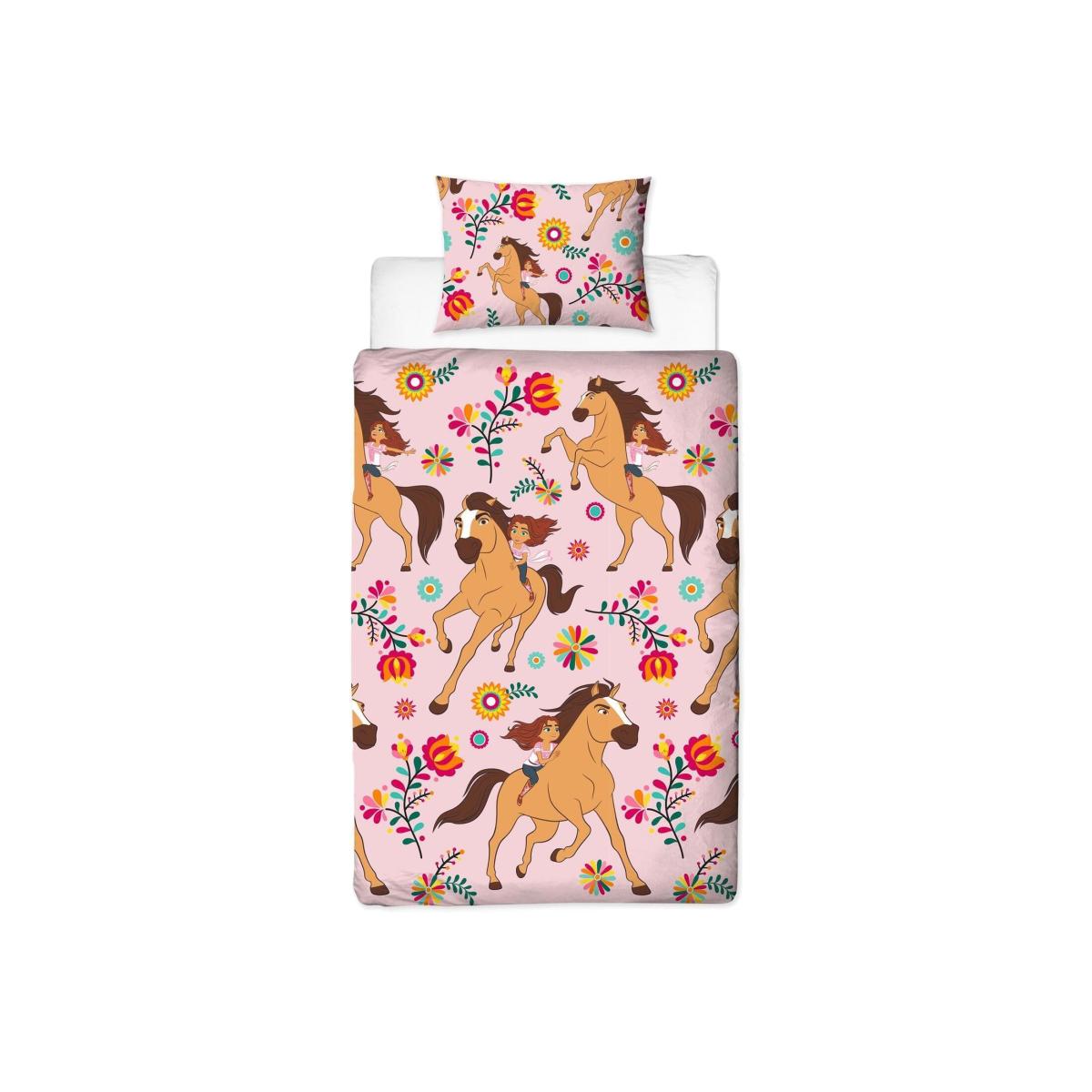 Spirit Untamed Official Horse Floral Duvet Cover with Pillowcase bedding Set - Pink