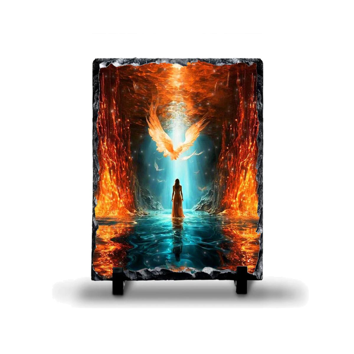 I love this spiritual healing rock on slate because it adds a striking focal point that combines natural textures with bold imagery. It works wonderfully in contemporary or bohemian interiors, where it can serve as a statement piece that sparks conversation. To style it effectively, consider pairing it with minimalistic furniture and neutral tones to let the artwork stand out. Placing it on a mantle, console table, or a dedicated gallery wall will give it prominence, while also enhancing the room’s overall aesthetic without overwhelming the space. It’s versatile, so it can seamlessly fit into living rooms, bedrooms, or even meditation areas.