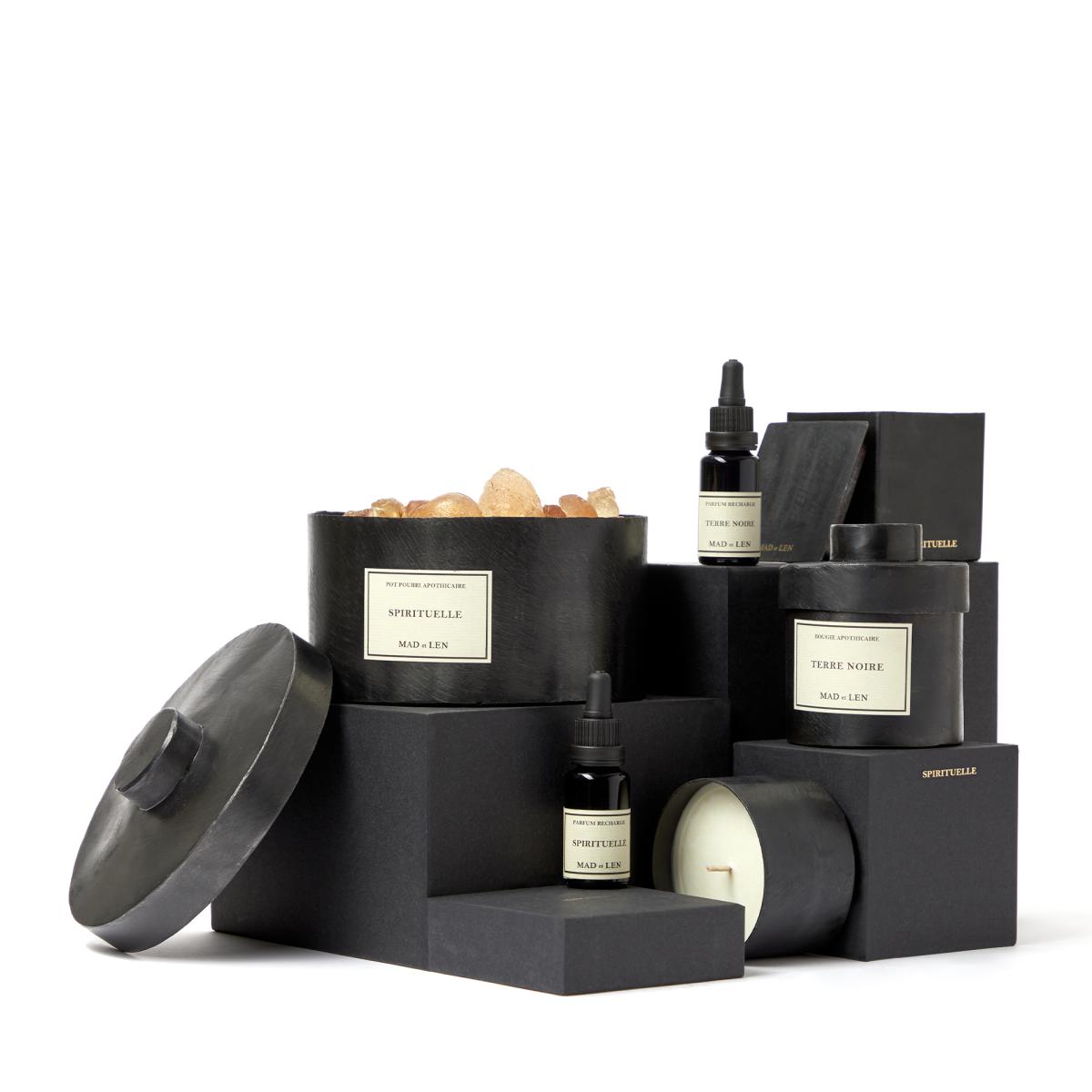 The Spirituelle Bougie Apothicaire Candle from MAD et LEN is inspired by our natural surroundings, creating a peaceful atmosphere for your home. Hand-poured from vegan soy wax in a black iron vessel, the candle boasts scents of floral, cassis, blackcurrant, fresh basil and mint, with a burn time of approximately 35 hours. MAD et LEN's experimental fragrance brand was founded in 2007 by Sandra Fuzier and Alexandre Piffaut. Based in Southern France, the duo create unique and refined products informed by nature and our primal olfactory senses.