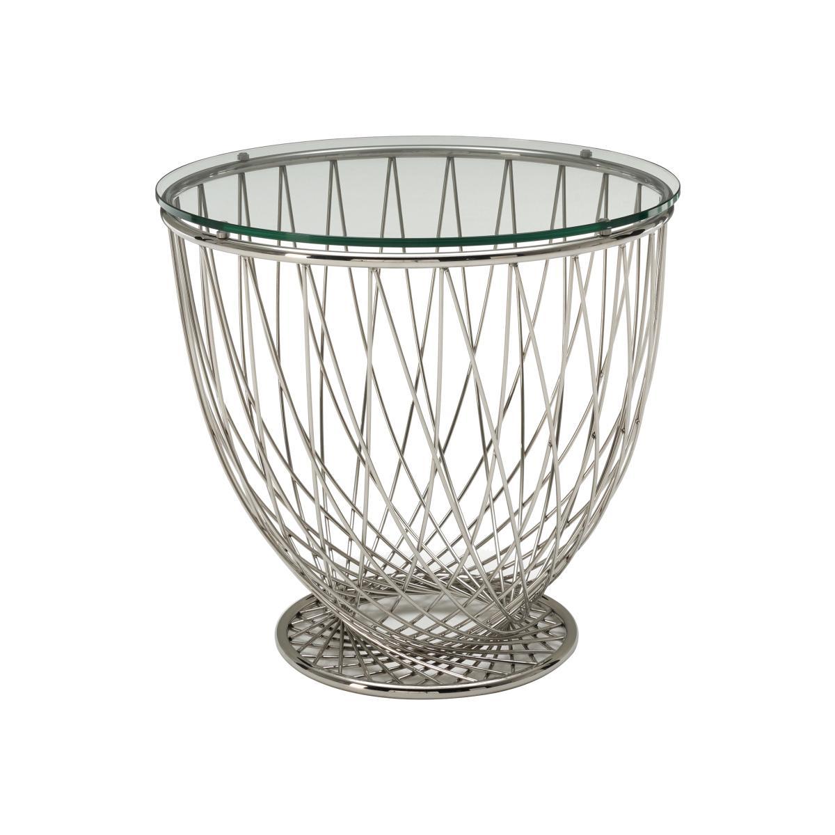 A study in strength and beauty, the Spiro lamp table delivers timeless elegance and a stylishly modern feel. Sized for modern living, this eye- catching end table has a circular glass top usefully resistant to spillages which rests on a stunning basket- weave base thats created by skilfully welding together polished stainless steel rods. The open construction gives it an airy feel, making it an ideal choice for a more compact living space. The Spiro lamp table is part of the Spiro collection of occasional tables. The collection also includes a circular coffee table which features the same polished stainless steel basket- weave design.