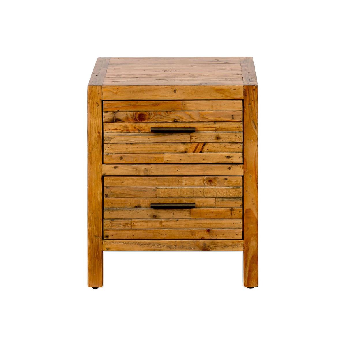 The beauty of real wood meets stylish industrial design in our on-trend Spitalfields bedroom furniture range. Made entirely from Forestry Stewardship Council-certified reclaimed wood, the look is authentic and characterful, and the rustic narrow-plank finish means that every piece in the collection is one-of-a-kind. And with both wide and narrow chests of drawers and three sizes of bed frame, it’s easy to bring home this distinctive look whatever the size or shape of your bedroom. The handcrafted Spitalfields collection is a Furniture Village online exclusive. Enjoy authentic industrial bedroom style with this well-designed and beautifully handcrafted two-drawer bedside cabinet with metal drawer handles. Why you'll love it Industrial style handmade from reclaimed timber. Characterful and rustic. Narrow-plank finish showcases the beautiful natural variations of real wood. An ethical choice – it’s made from only FSC-certified wood. Sturdily crafted with dovetail drawer joints and tongue and groove back. Delivered to you fully assembled. Only available online. This 2-drawer bedside cabinet is part of the Spitalfields range. What you need to know Made from FSC-certified reclaimed pine. Colour variations, knots, markings, chips and cracks are to be expected. Avoid placing in direct sunlight or close to a heat source. We recommend using placemats and coasters at all times.