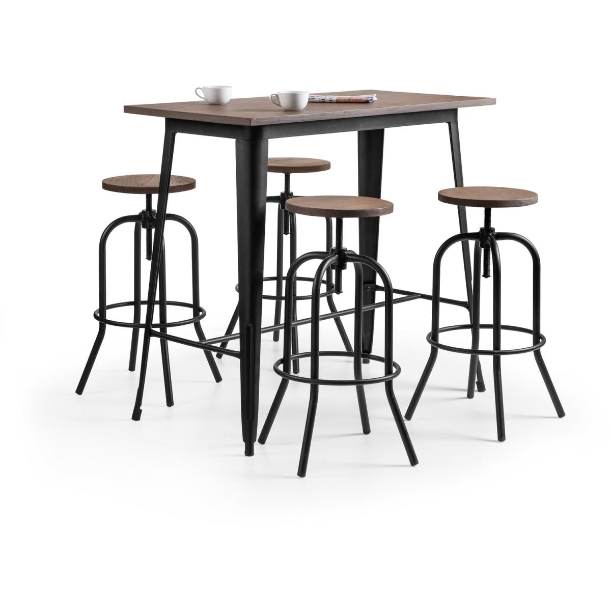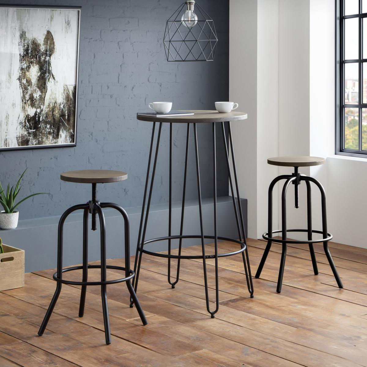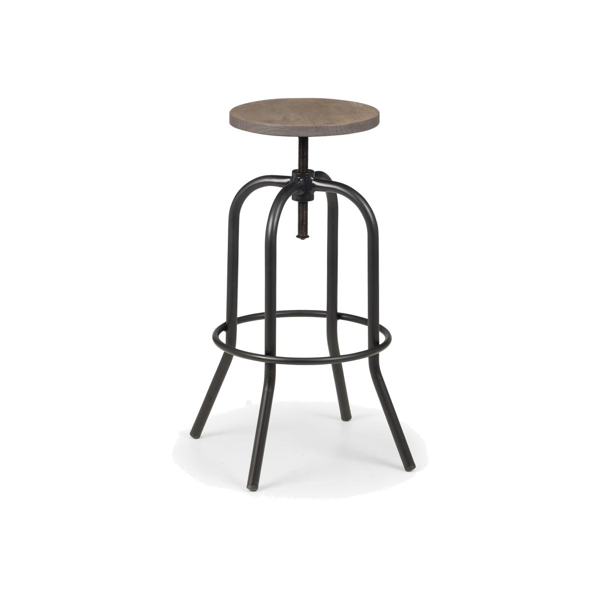 The Spitfire Bar Stool offers a vintage style with rustic character, adding an antique aesthetic to your kitchen or bar. Featuring an adjustable classic round seat with a backless design, crafted from solid elm wood with a satin black powder-coated steel frame. Simply spin the seat clockwise and anti-clockwise to adjust the height. Perfect match for the Dalston Bar Table.