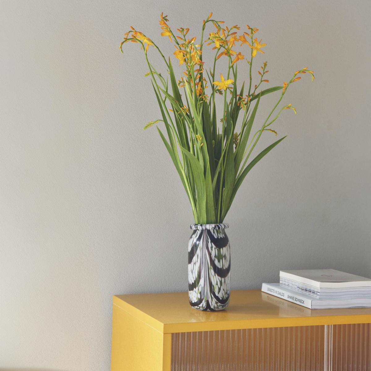 I love the splash roll neck XS vase for its tactile, handmade feel and the way its warm brown glass adds depth to a space. Its compact size makes it ideal for displaying small florals or greenery on a side table, windowsill, or shelf. It works particularly well in both modern and eclectic interiors, where its textured pattern can add visual interest without overwhelming the overall look. For styling, try grouping it with other glass pieces or minimalist ceramics to create a curated, layered vignette. Alternatively, it can serve as a standalone piece on a mantle or console to add a touch of natural warmth and craftsmanship.