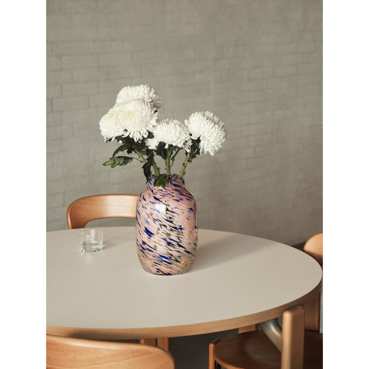 The Splash Round vase L 27 cm from the Danish brand HAY is a gorgeous, handcrafted interior centrepiece. The vase has been made with a specialized glass blowing technique that utilizes several layers of pristine glass. Use the vase as a fine decorative detail on its own or pair it with all kinds of beautiful floral arrangements. The narrow mouth at the top keeps the interior flowers nicely bound together so as to present them in a stylish and charming manner.