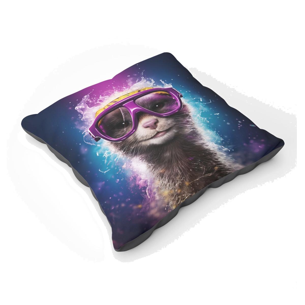 Splashart Ferret With Glasses Purple Floor Cushion - Purple