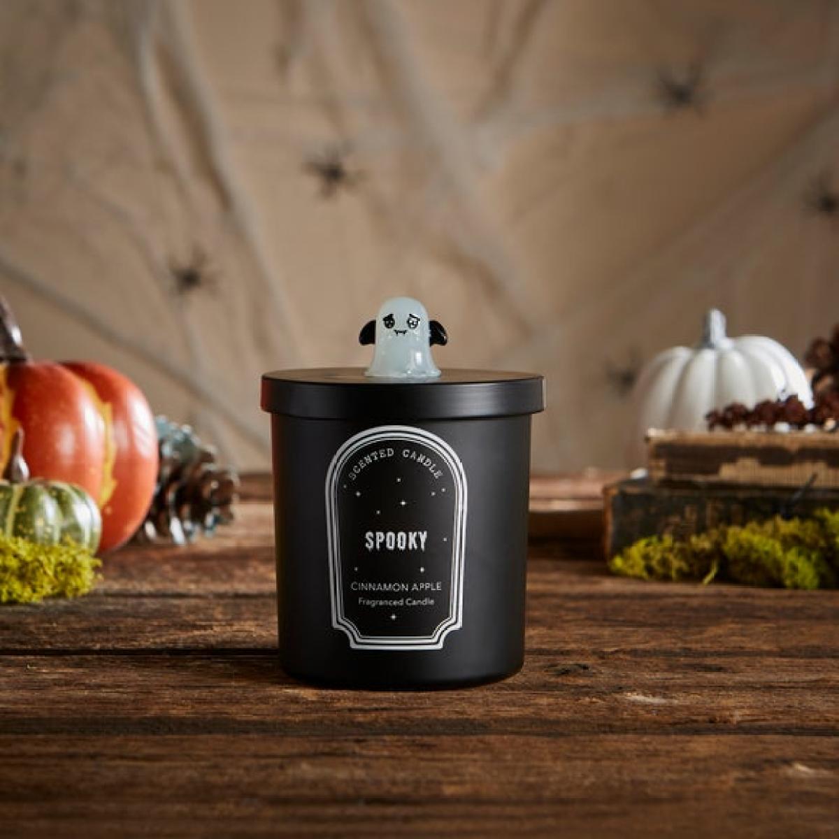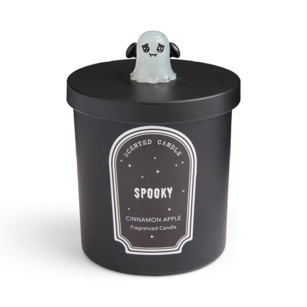 * Sweet and spicy fruity scent * Novelty ghost character lid * All-black jar and lid * Up to 35 hours burn time The Spooky Halloween Candle fills your home with a comforting, nostalgic warmth. Its fragrance blends ripe apple, soft peach, and sparkling citrus with golden cinnamon and muscovado sugar spices. Presented in an all-black glass vessel, it features a charming ghost character on the lid for a festive touch. This candle burns for up to 35 hours, making it perfect for Halloween nights. The apple and cinnamon scent creates a cosy, seasonal atmosphere, making this a stylish and fun addition to your Halloween décor.