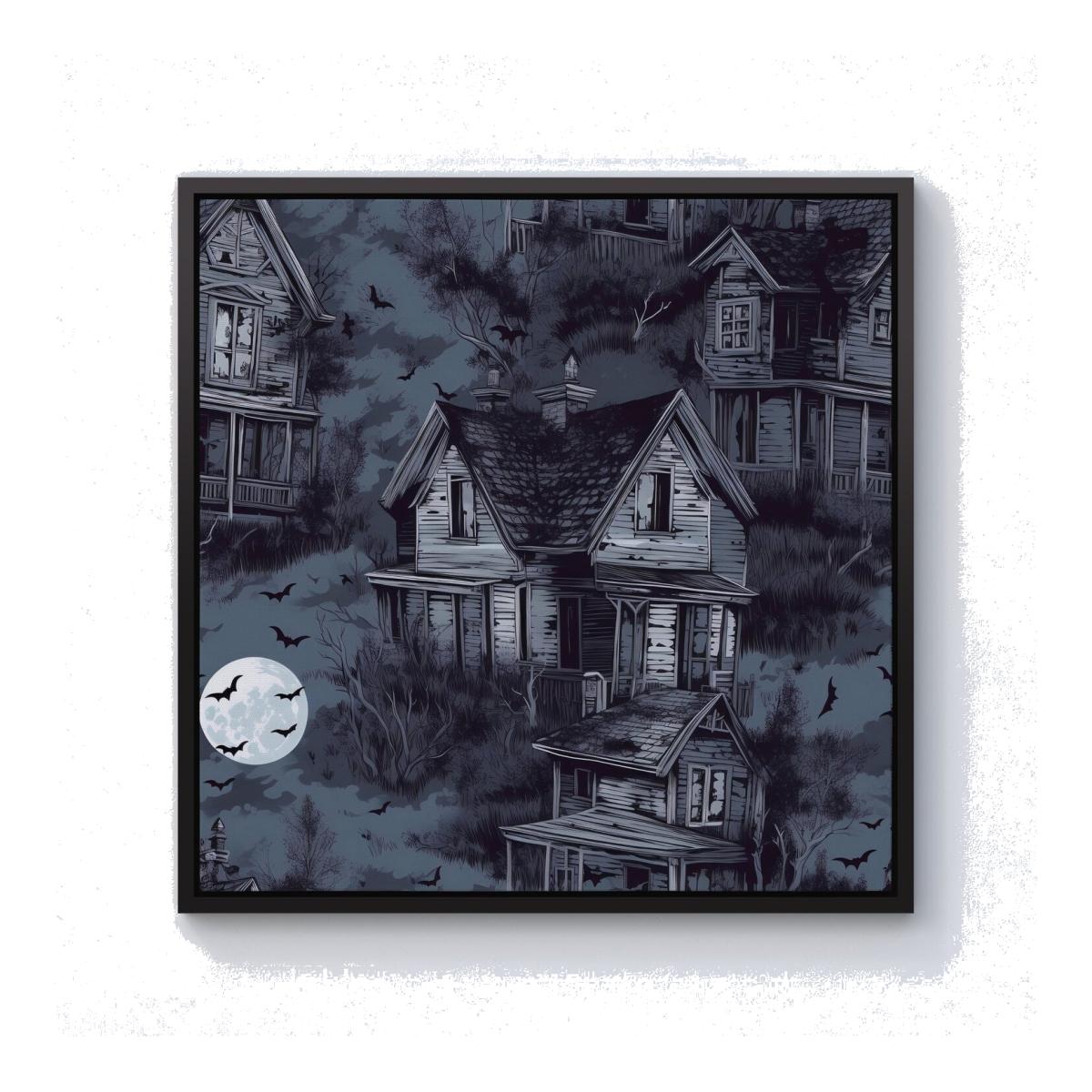 Spooky Shadowy Haunted House Canvas Print - Grey / 25.4cm / Black Frame