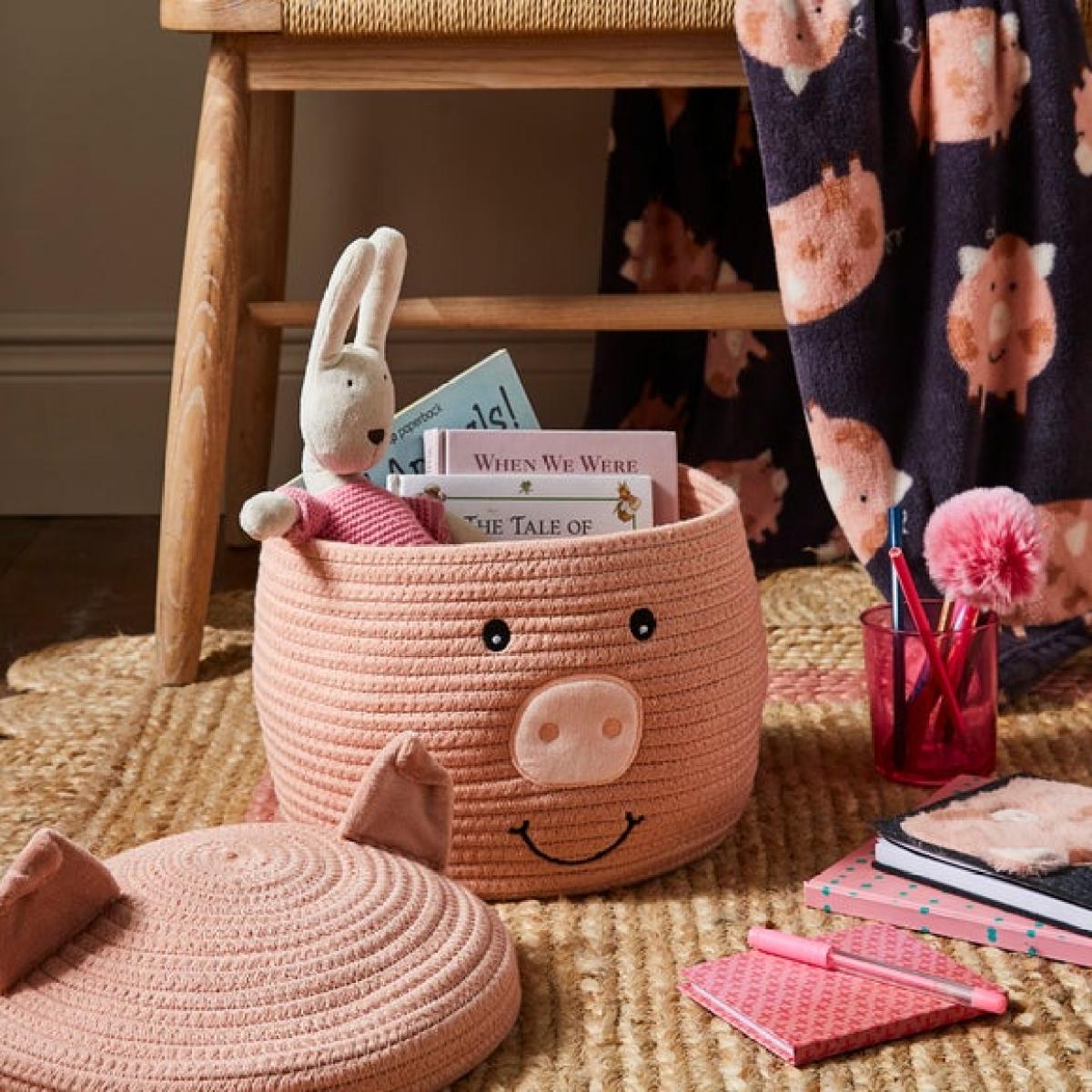I love this pig-shaped basket for its playful charm and practical design. It works particularly well in cosy, eclectic, or children's interiors, adding a touch of personality to storage while keeping things neat. The lid helps conceal clutter, making it ideal for bedrooms or playrooms, but it can also be a fun storage option in living spaces or hallways. When styling, try pairing it with other soft textures or earthy tones to keep the look warm and inviting. It’s a versatile piece that combines function with a fun aesthetic - perfect for adding a bit of whimsy without compromising practicality.