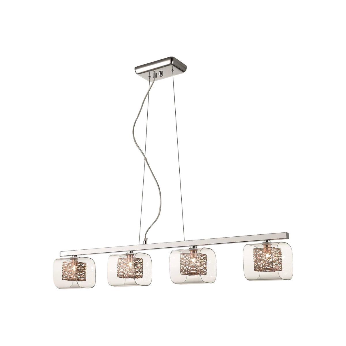 Spring 4 Light Ceiling Pendant Bar Mesh Chrome, Copper, Glass Four, G9 - Chrome