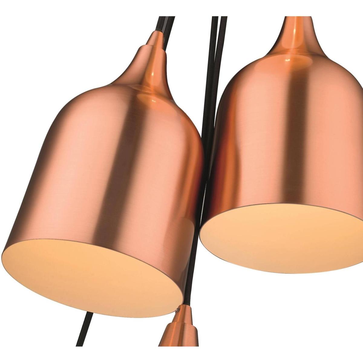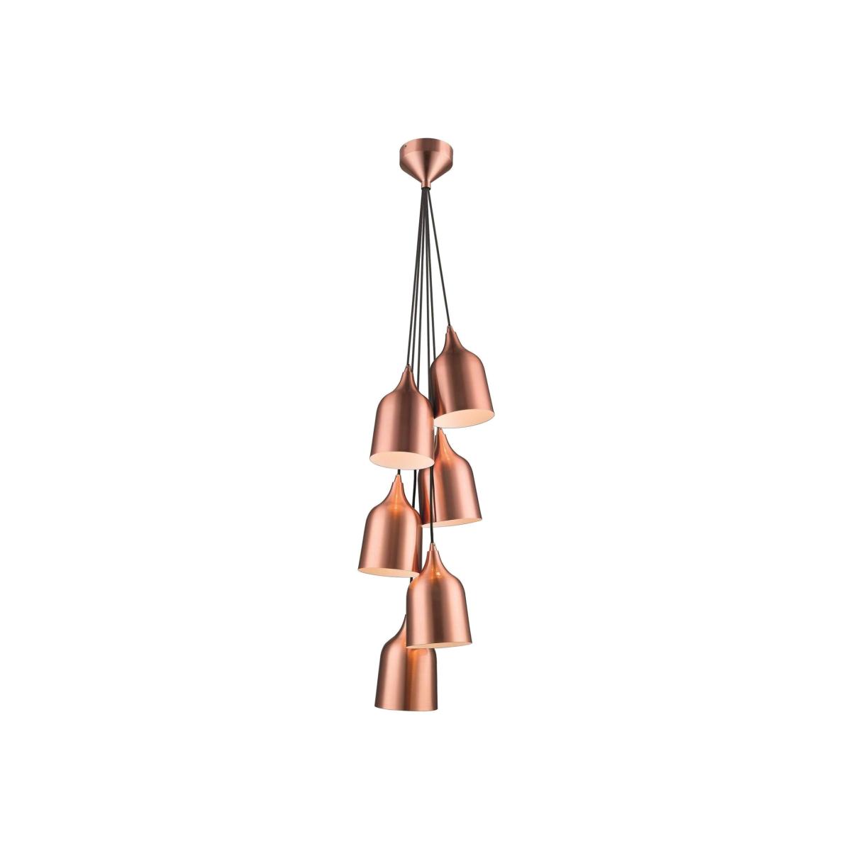 The introduction of the six light pendant will go a considerable way to remodelling almost any interior. It will inject a dash of smart fashion in one of three finishes this copper finish, or a satin nickel or matt black. 's metal body is complimented by a black weaved cable. Class one. Dimmable. Includes a two year guarantee, except when mounted within five miles of the coastline. Also available in a single pendant.