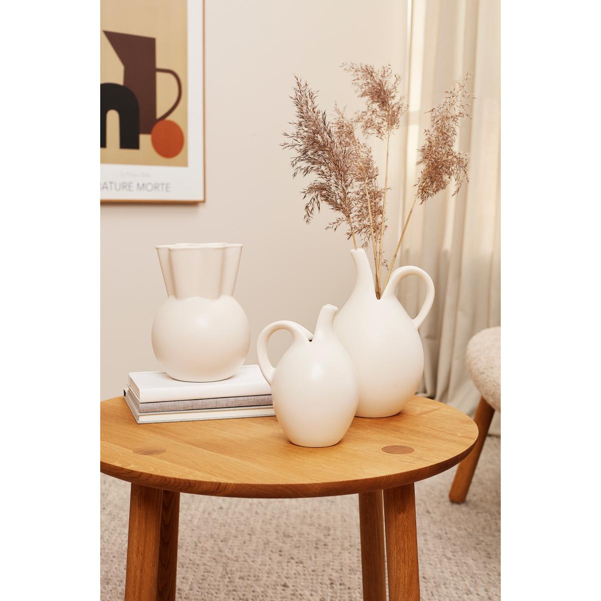 I really love this little vase for its simple yet sculptural silhouette-perfect for adding subtle texture to a variety of interiors. It works particularly well in minimalist, Scandinavian, or modern spaces where its understated elegance can shine. I’d style it with fresh blooms or green foliage for a pop of colour, or leave it empty as a sculptural object on shelves, side tables, or mantelpieces. Its neutral tone makes it versatile, so pairing it with natural materials like wood or stone amplifies its contemporary appeal. Practical tip: use it as a standalone piece or combine it with similar-sized vessels for a curated, layered display.